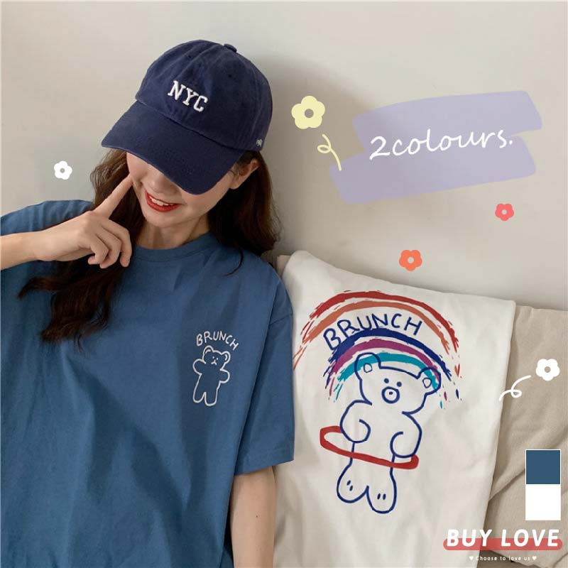 【買到戀愛】隔日到貨 限量 Brunch 彩虹呼拉熊印花短袖棉T 短袖上衣 T恤【FA0091】