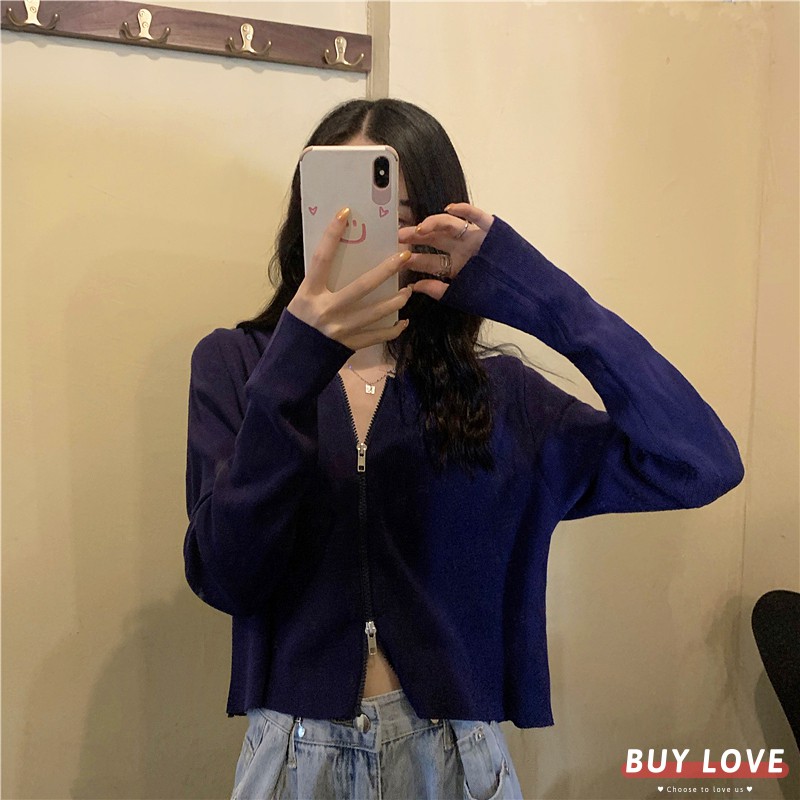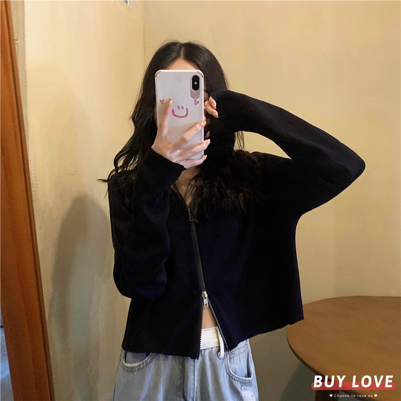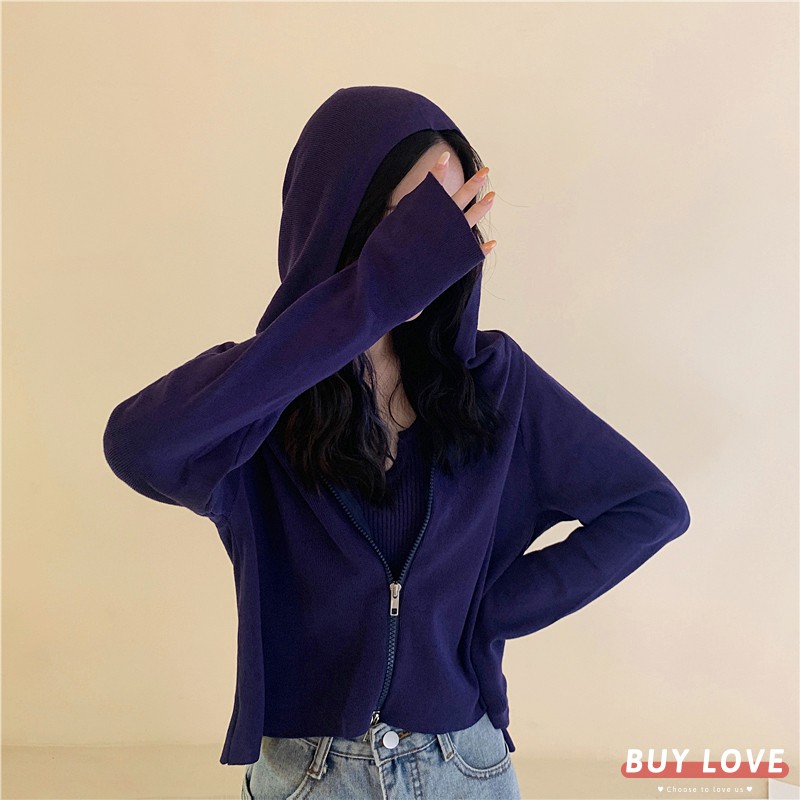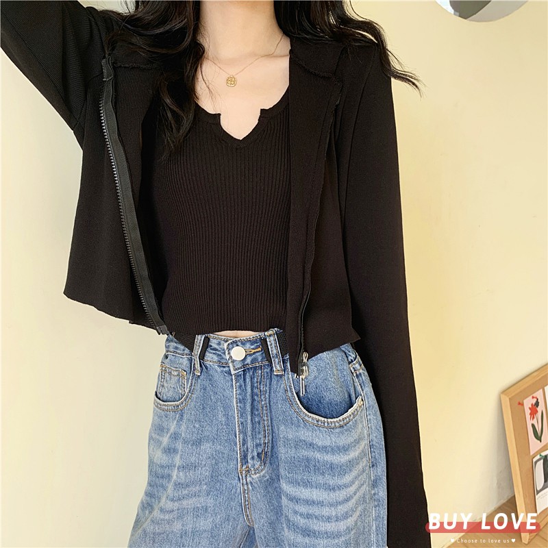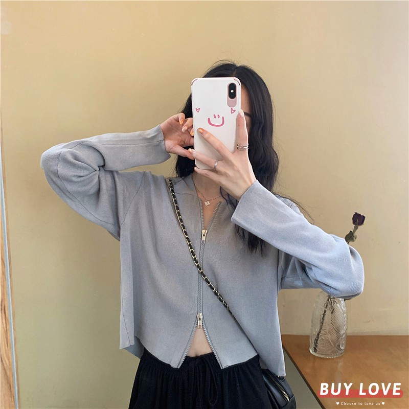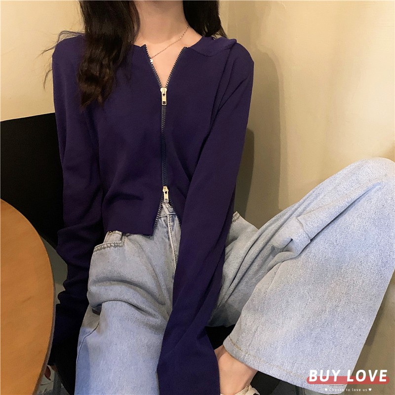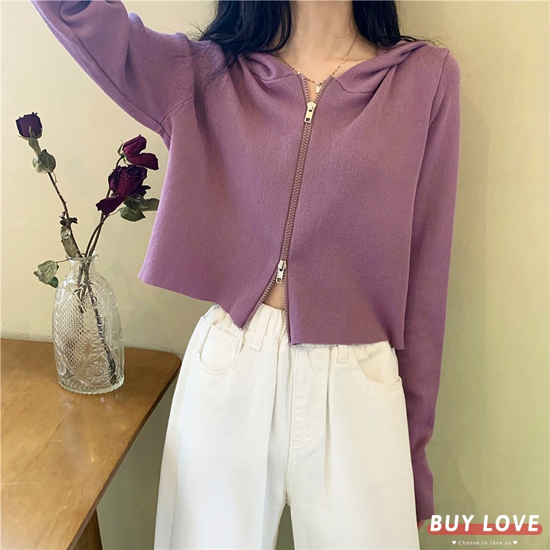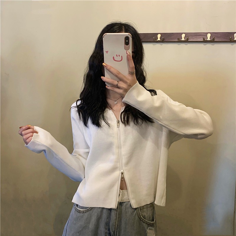 【買到戀愛】現貨出清 多色貼身針織款 白色雙拉鍊短版連帽外套 夾克 上衣 女裝 長袖 薄外套 百搭【Y1906】