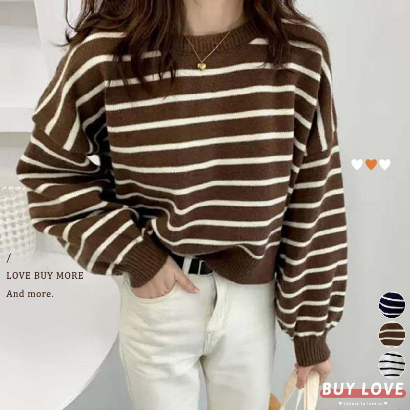 【買到戀愛】限量 隔日到貨 針織外套罩衫毛衣 圓領後排釦條紋針織毛衣 長袖上衣 T恤 外套 針織衫【FB190】