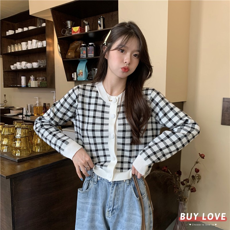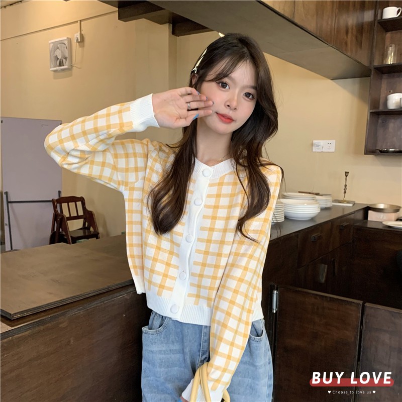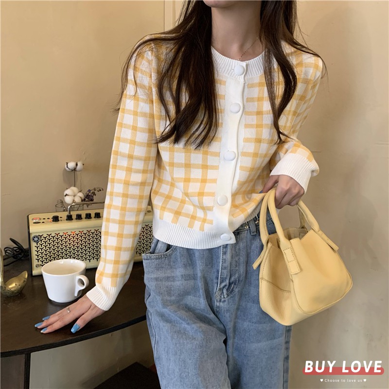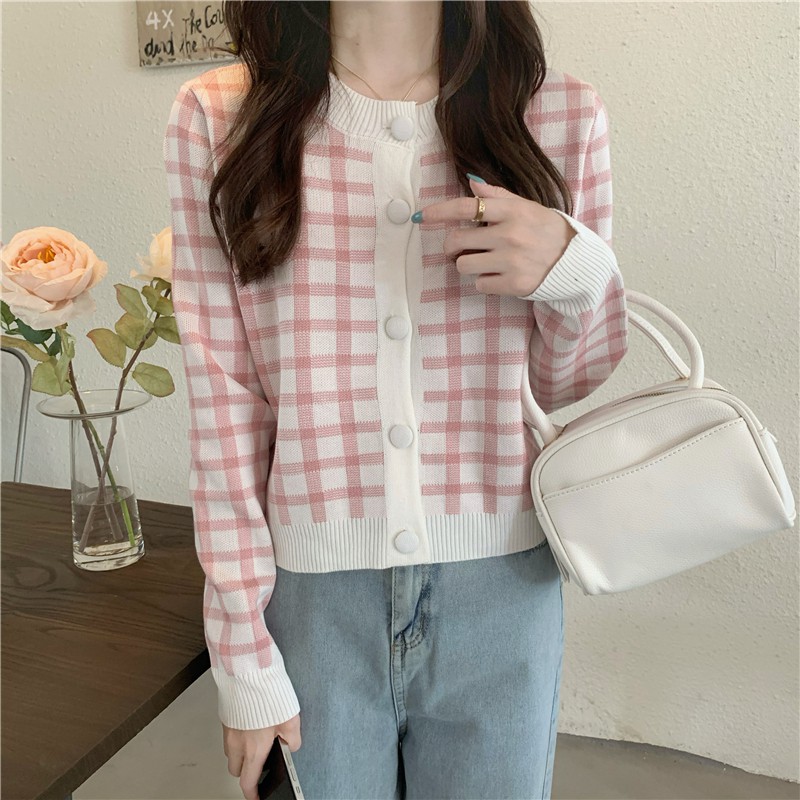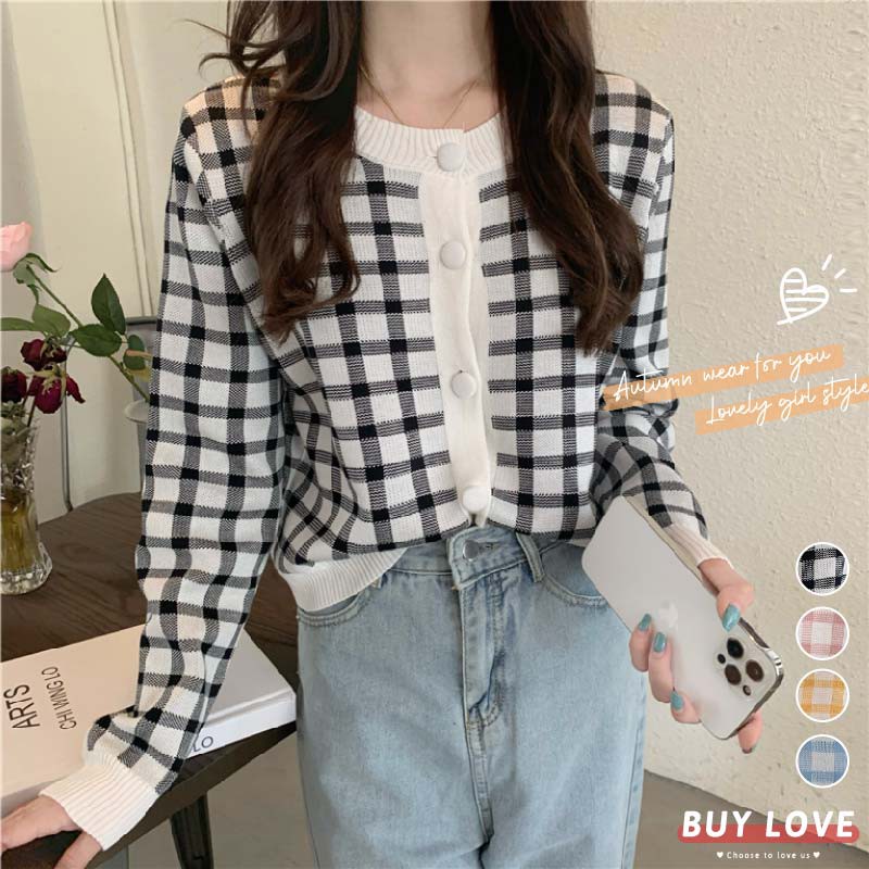 【買到戀愛】浪漫甜美系方格短版排釦長袖小外套 針織【Y8633】