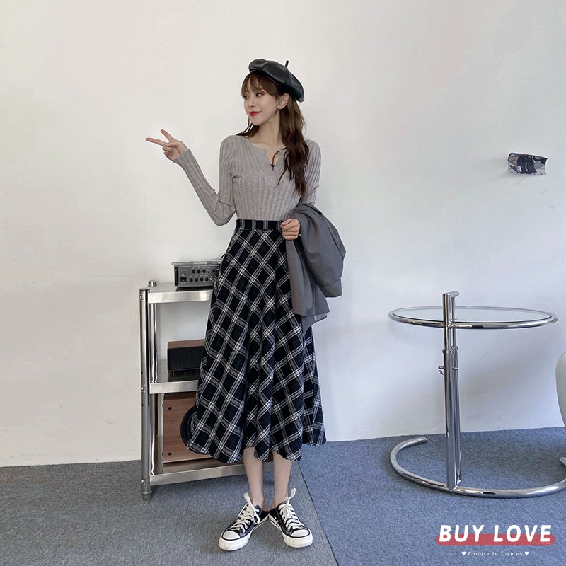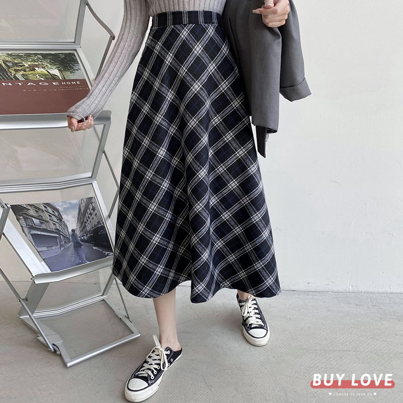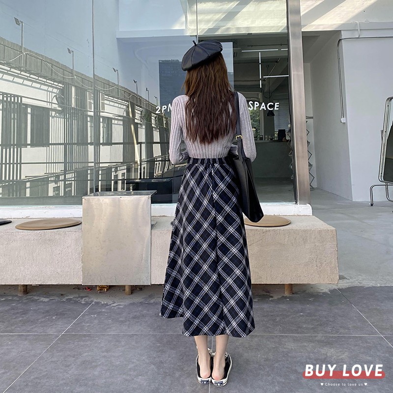 【買到戀愛】限量 復古高腰鬆緊格紋A字裙 【C1140】