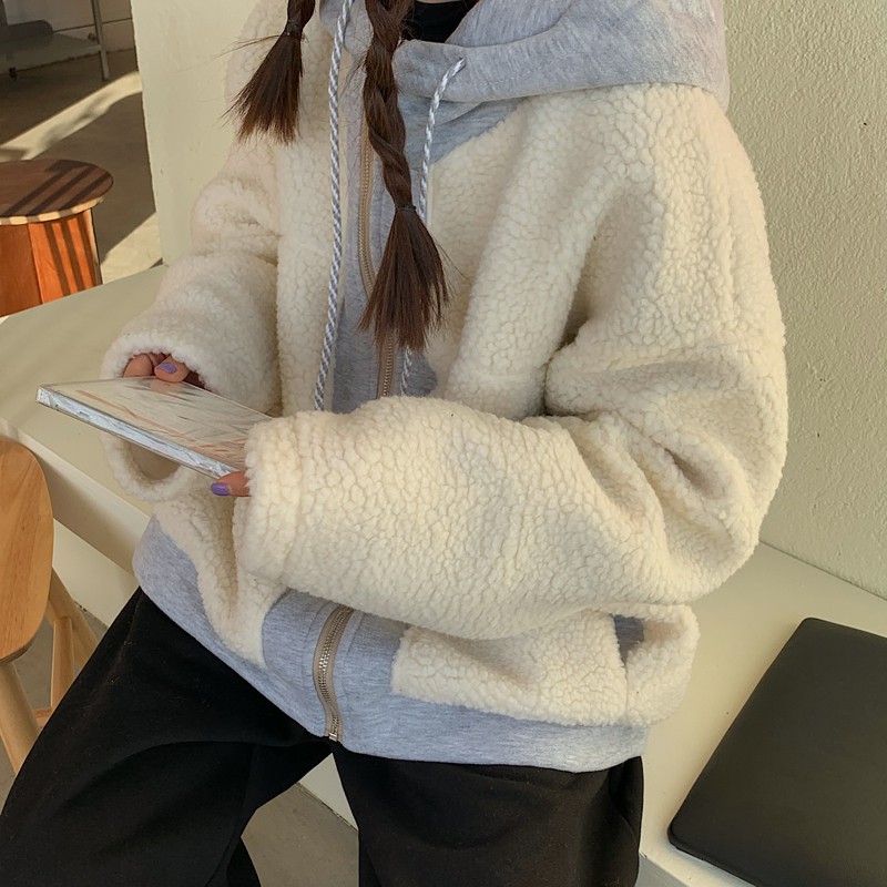【買到戀愛】限量 保暖毛毛外套 羊羔毛外套 假二件棒球 百搭外套 連帽外套 秋冬【Y9021】