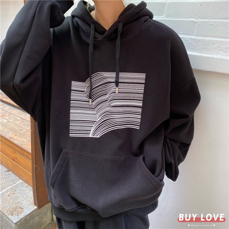 【買到戀愛】現貨出清 個性寬鬆線條印花長袖帽T 大學T 連帽T 衣服 衛衣【FB3363】