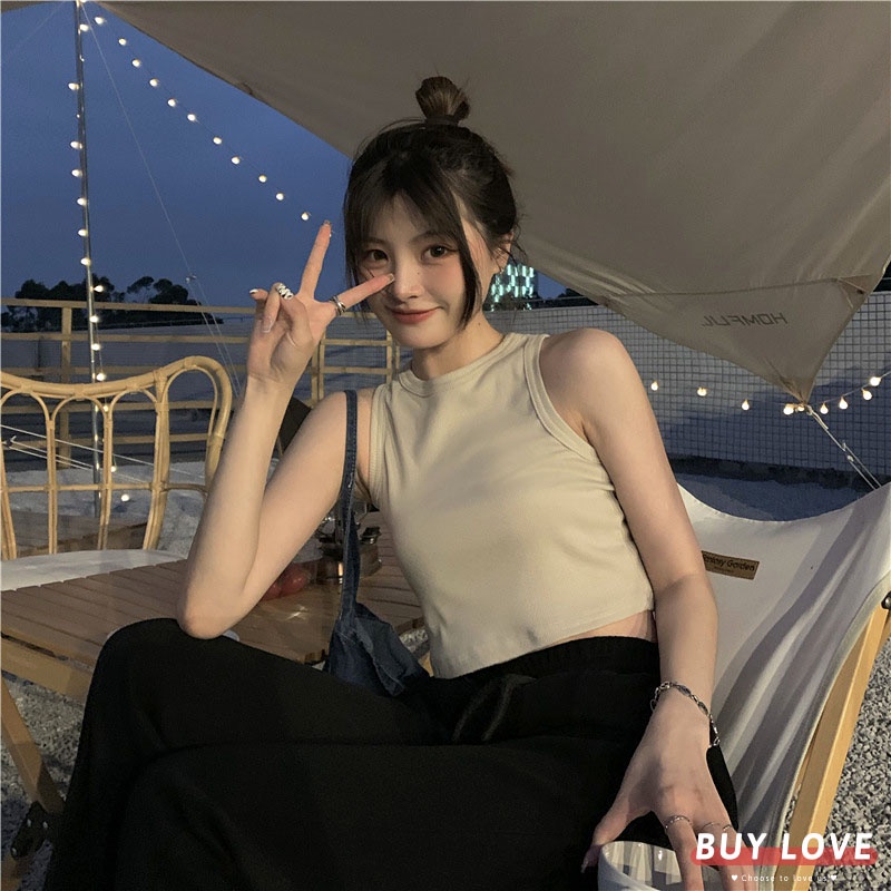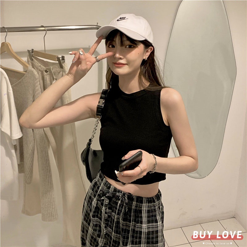 【買到戀愛】隔日到貨 削肩 短版素色無袖背心 顯瘦上衣 女上衣 短袖t恤 短T 素T 女裝 無袖背心【M1543】