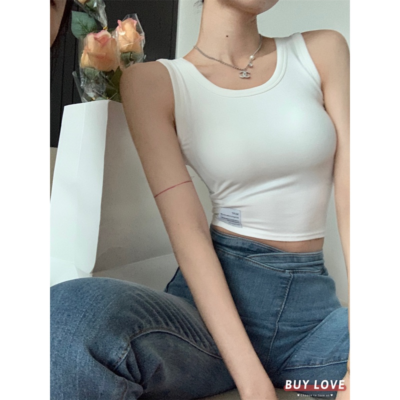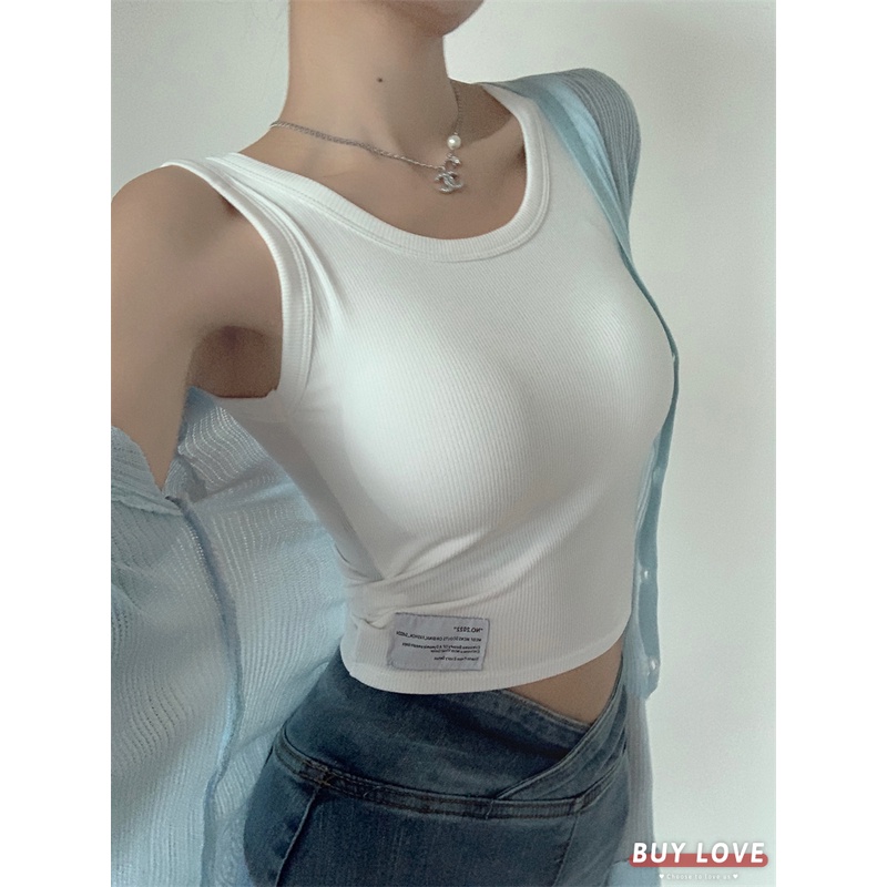 【買到戀愛】隔日到貨 性感素色小標短版背心 胸墊 免穿內衣 韓版背心 小可愛 素色背心 短版背心【M2143】