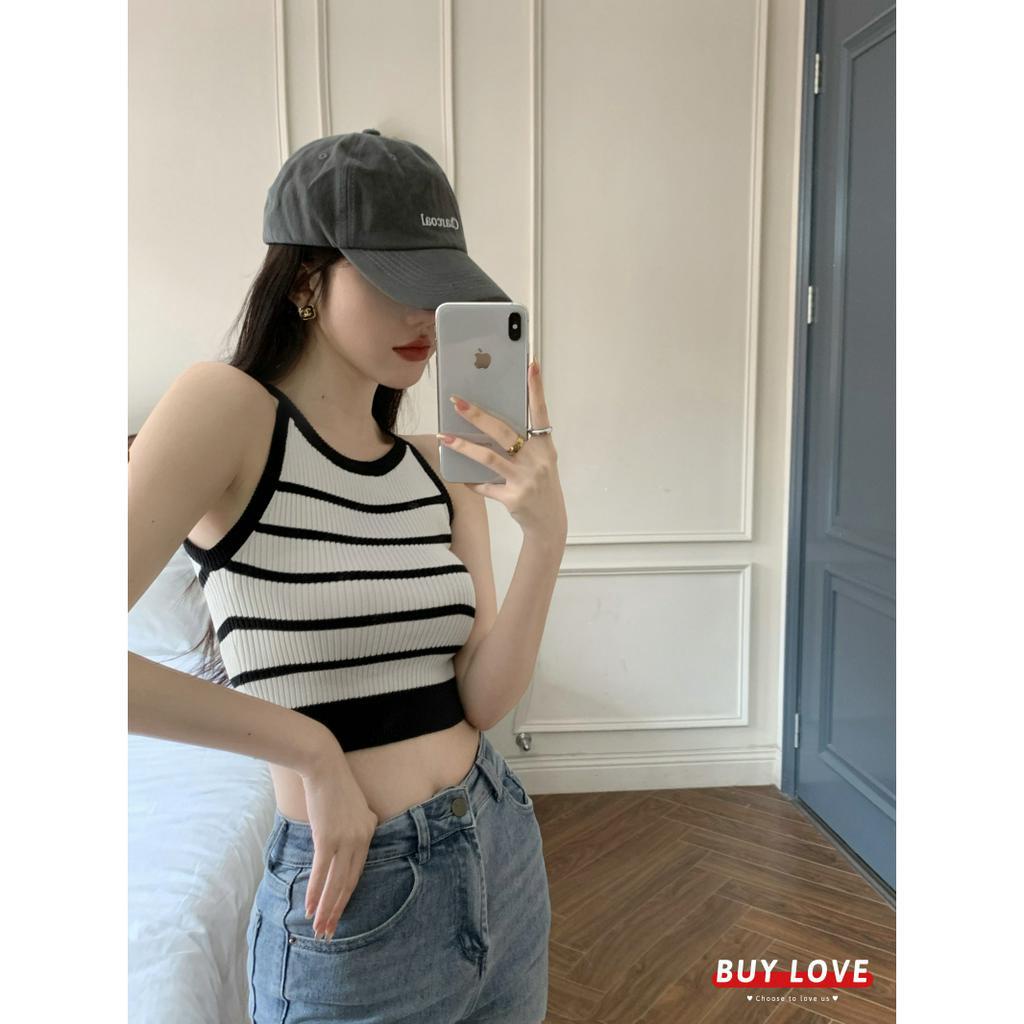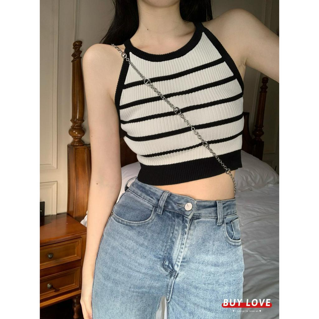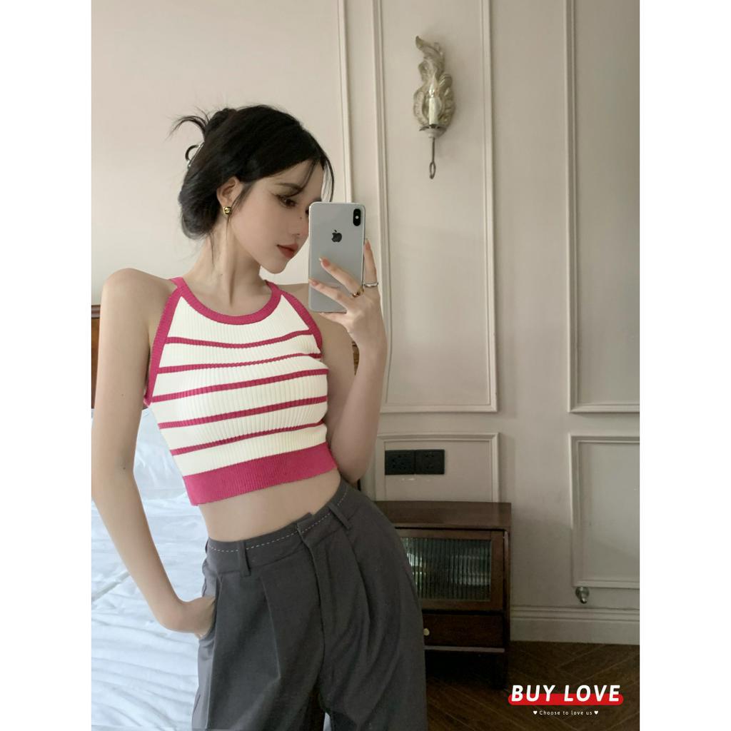 【買到戀愛】限量 隔日到貨 多色純欲風辣妹條紋針織背心 背心 針織背心 辣妹 女裝 女上衣 【M9582】
