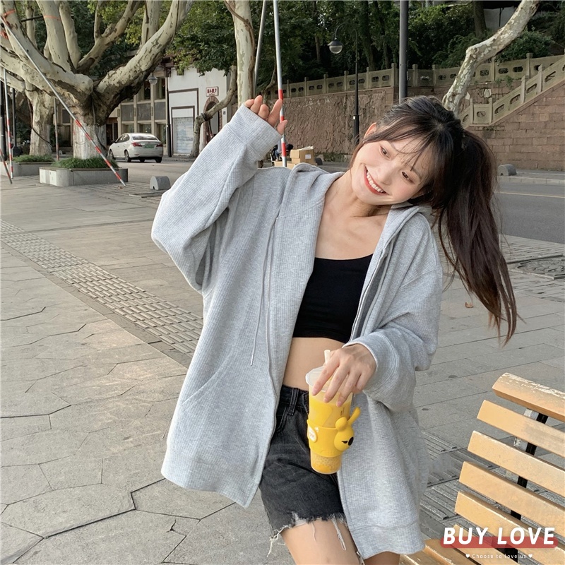 【買到戀愛】女裝 鬆餅格 韓版華夫格連帽外套 薄款 長袖 外套 拉鍊外套 帽T【Y5360】