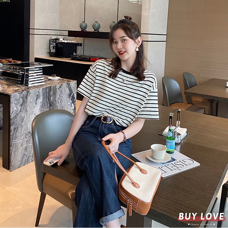 【買到戀愛】現貨出清 薄針織條紋短袖上衣【FT4943】