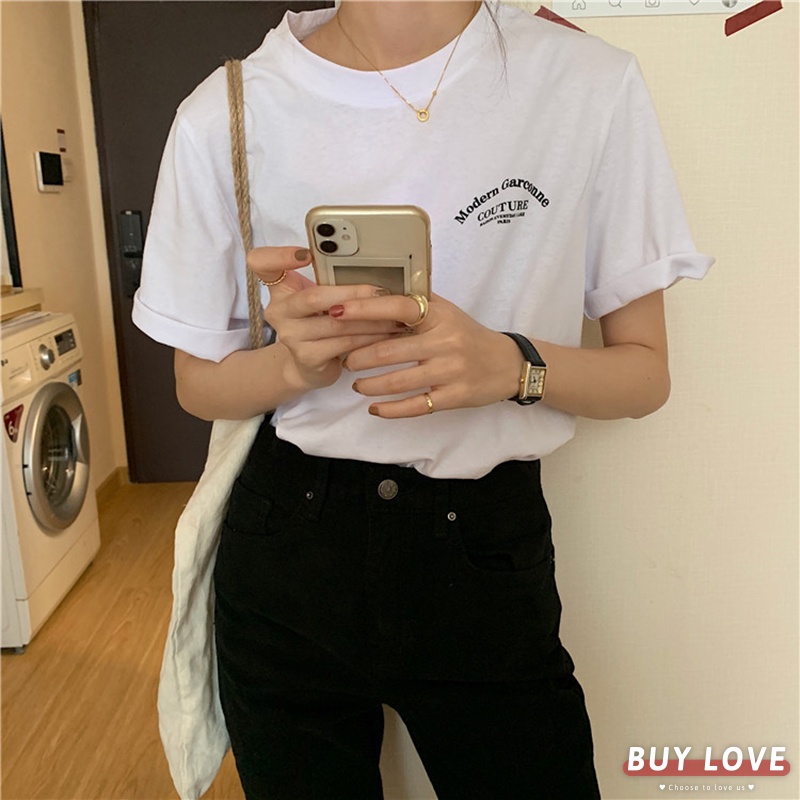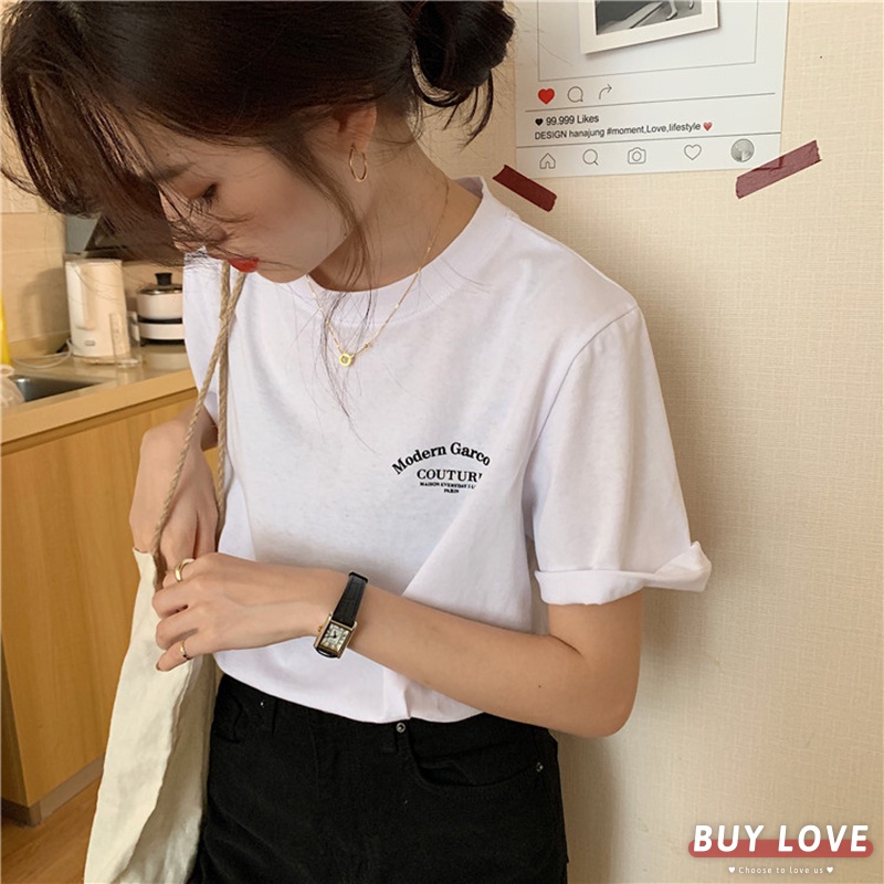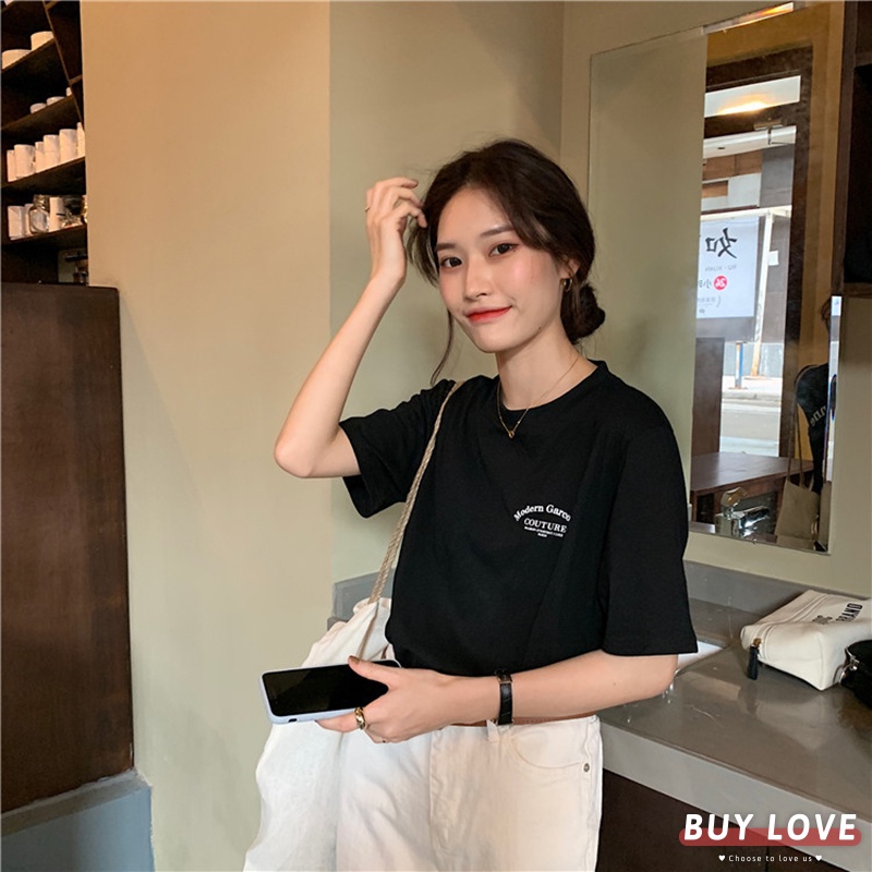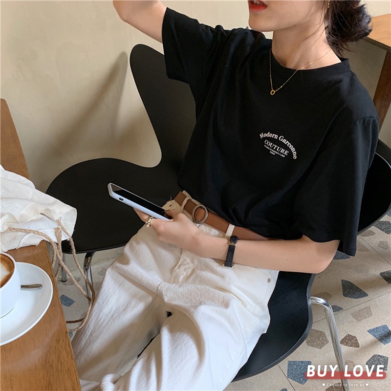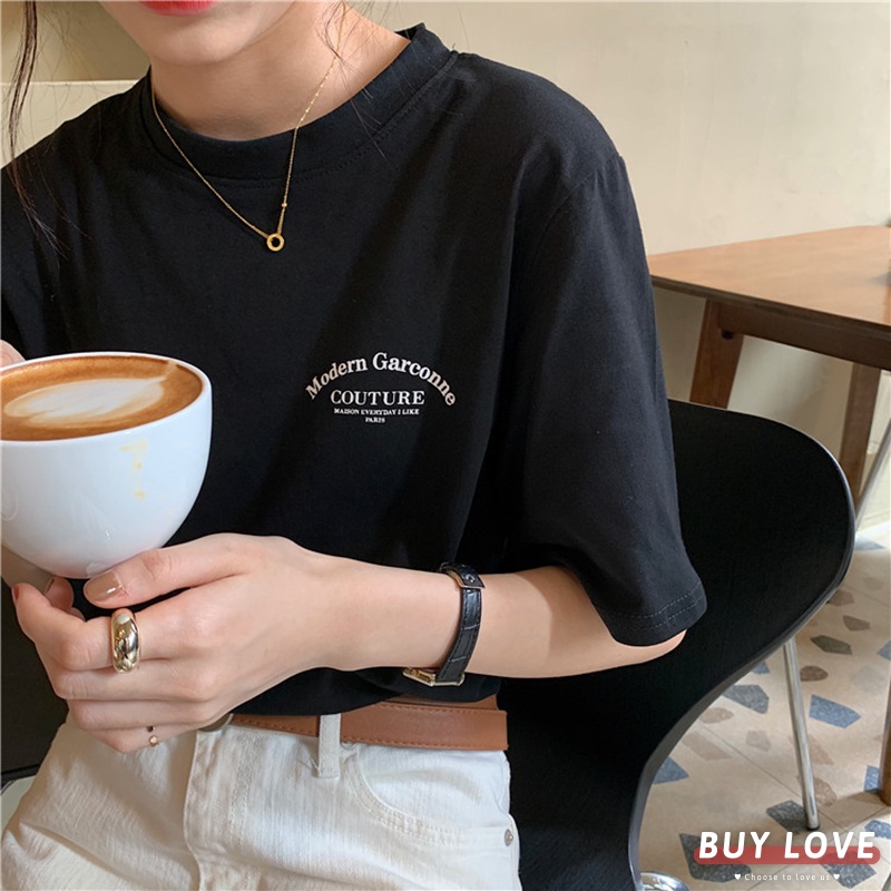 【買到戀愛】小清新字母短袖上衣 顯瘦上衣 女上衣 短袖t恤 短T 素T 女裝 寬鬆上衣【FT9309】