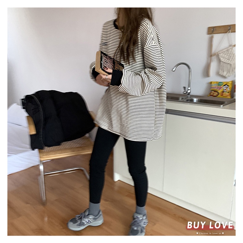 【買到戀愛】隔日到貨 寬鬆 小標條紋衛衣 大學T 長袖 上衣 女上衣【FB2834】
