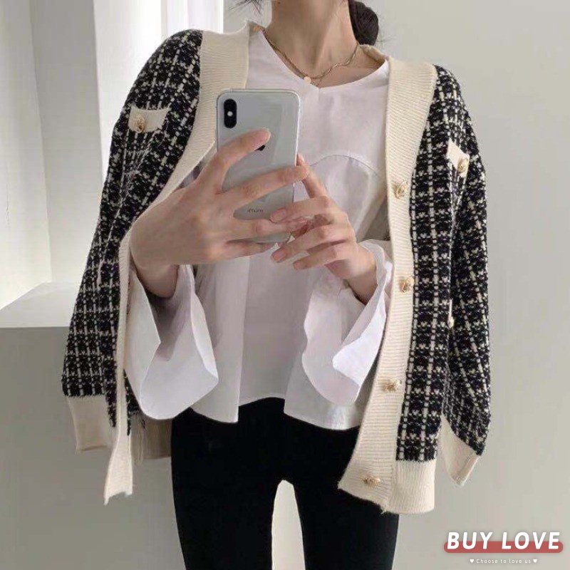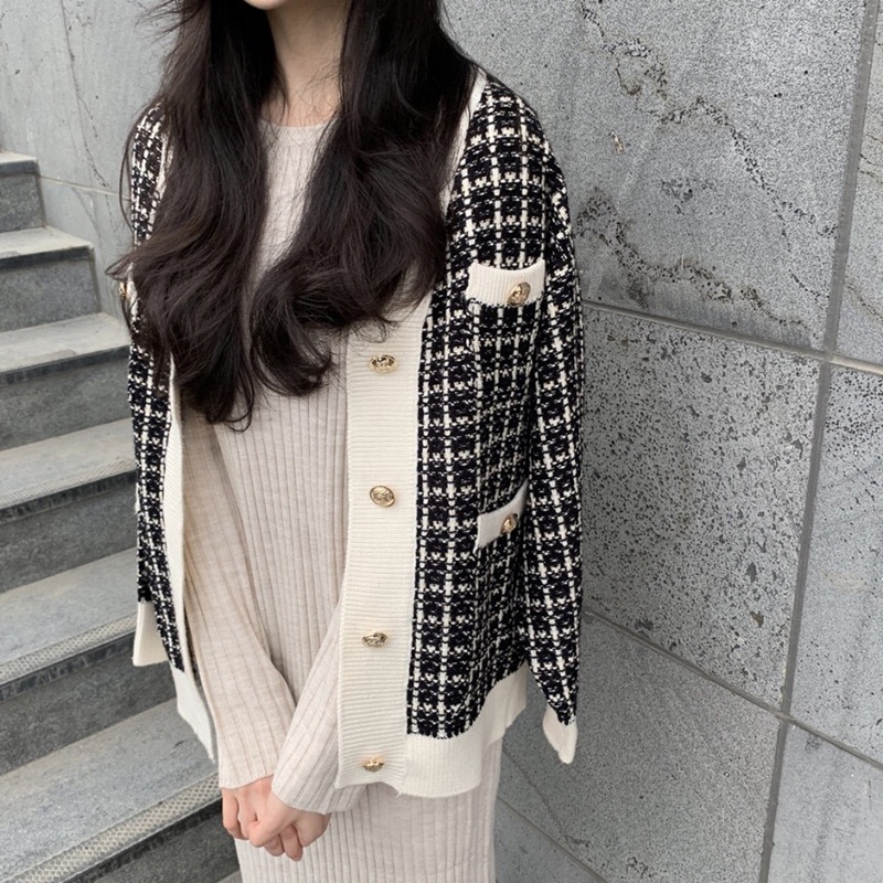 【買到戀愛】隔日到貨 韓版撞色小香風針織外套 長袖 外套 女裝 針織 毛衣【Y571】