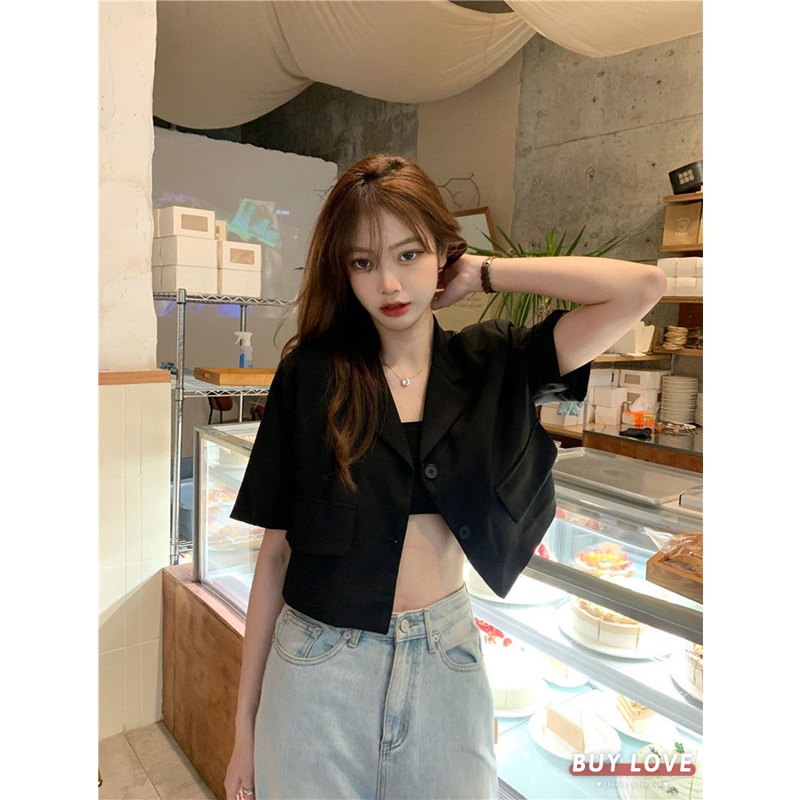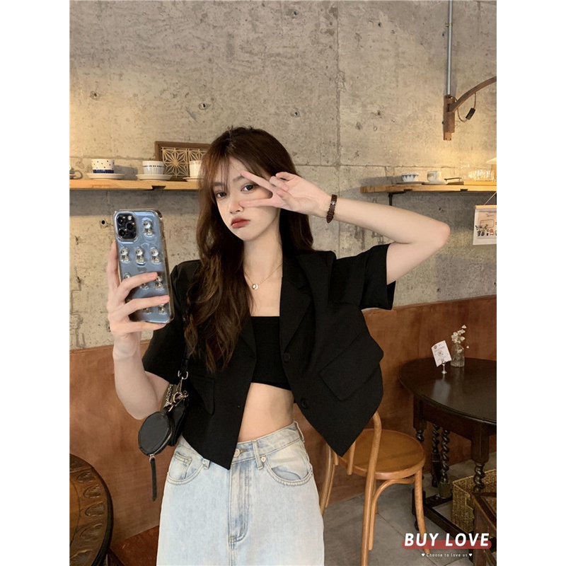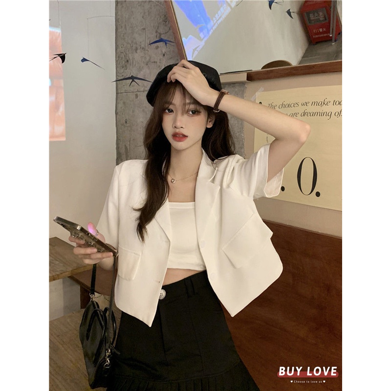 【買到戀愛】女裝 顯瘦短版西裝外套 短袖西外 顯瘦上衣 女上衣 短西裝外套 罩衫 女裝【FT3096】