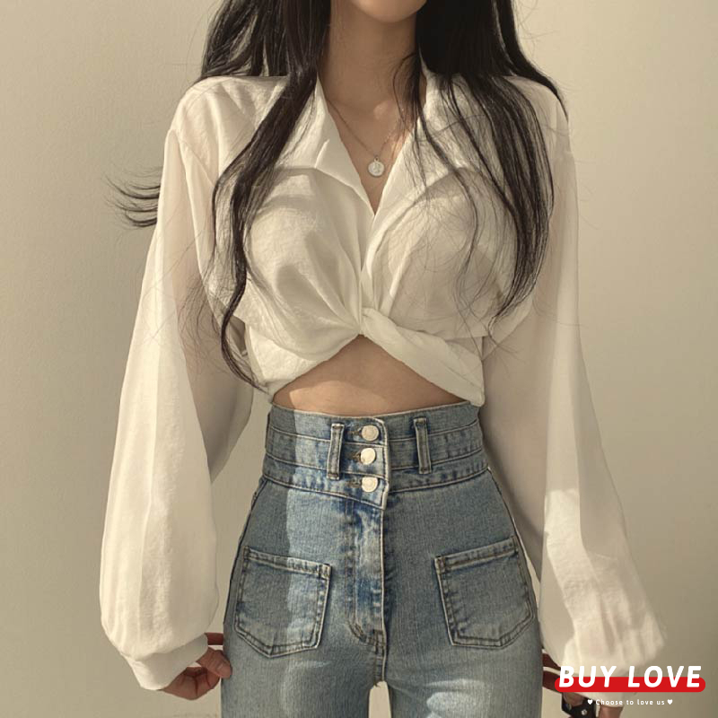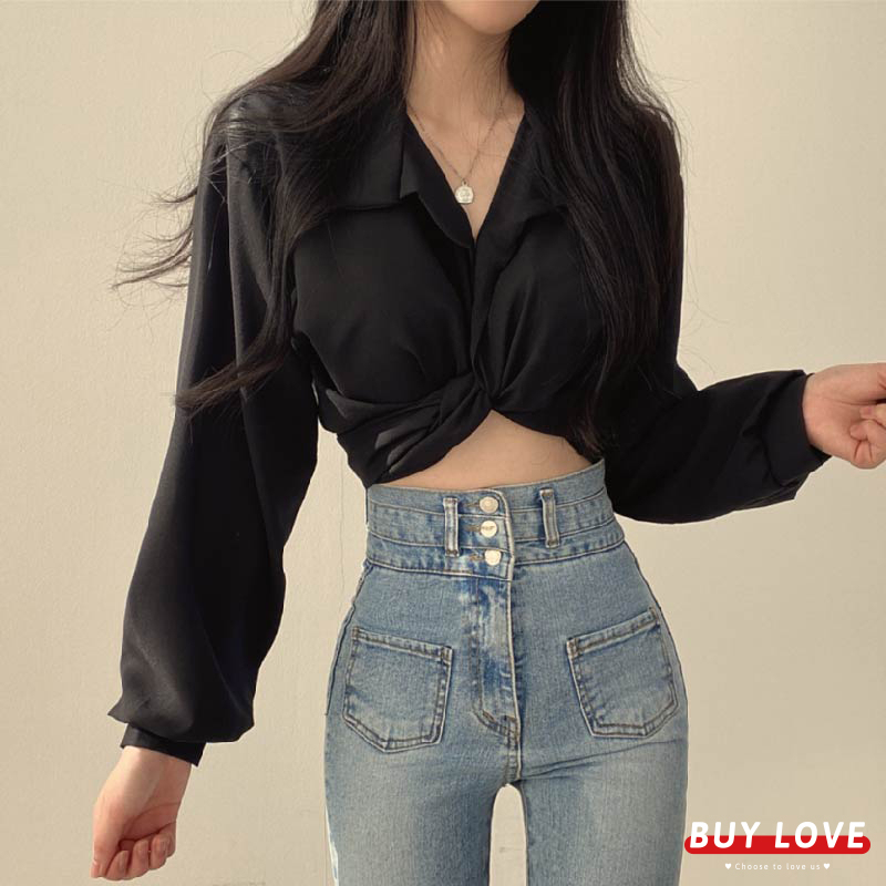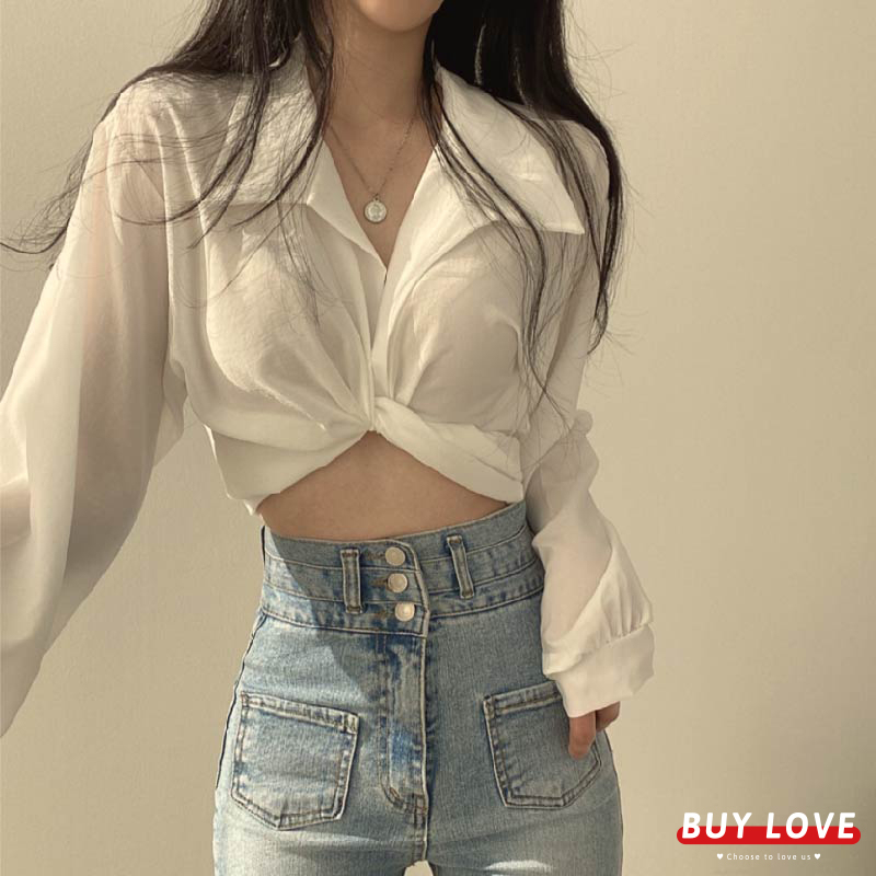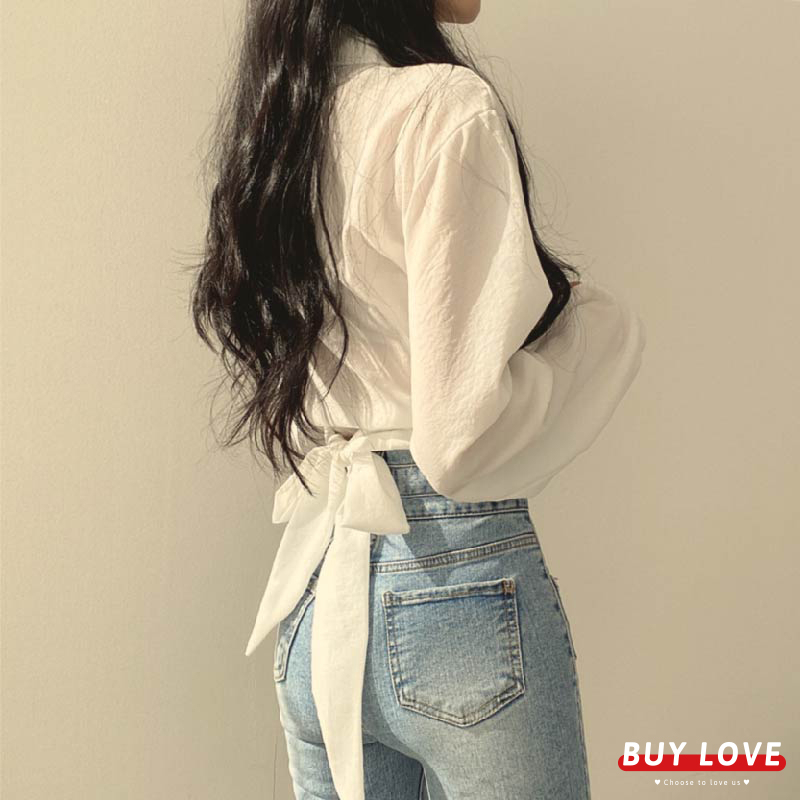 【買到戀愛】隔日到貨 蝴蝶結綁帶短版襯衫 多色 短袖 女上衣 女裝 顯瘦 性感 【FT4869】