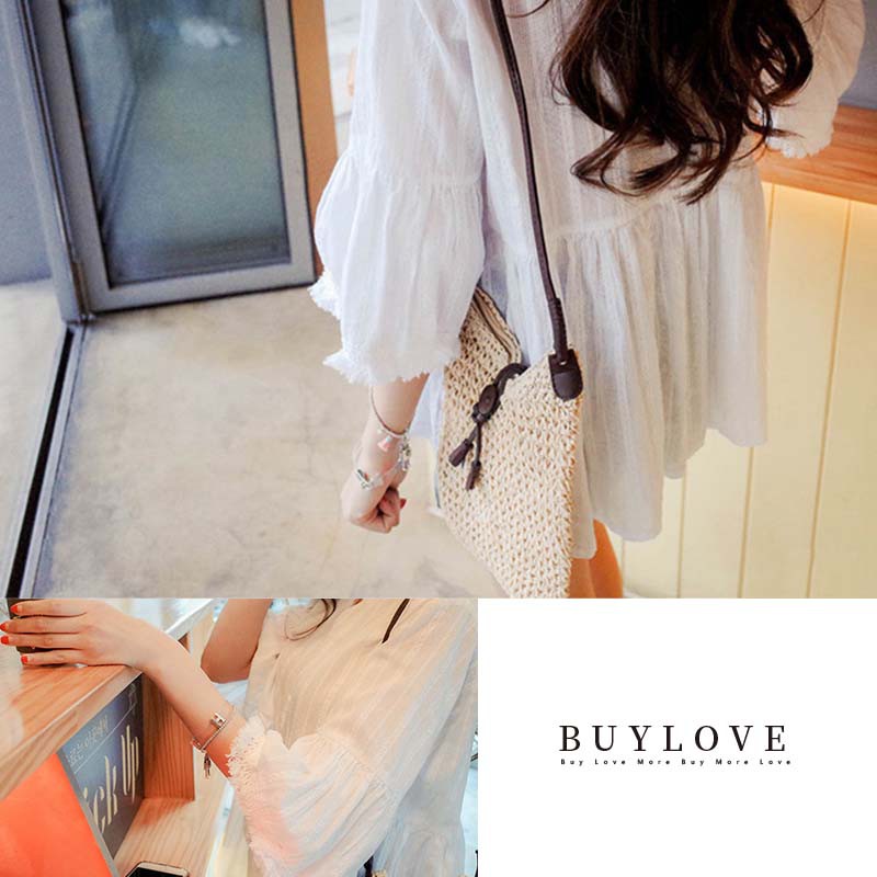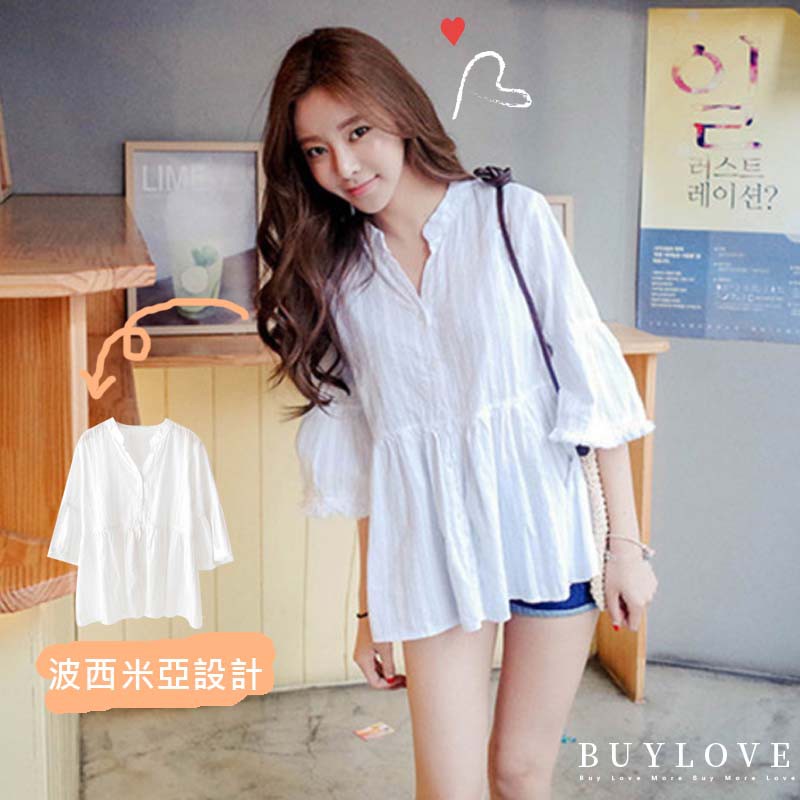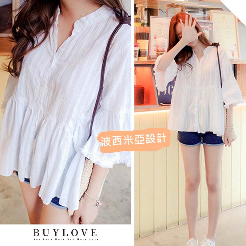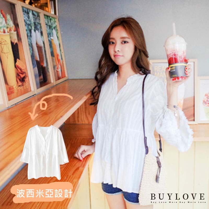 【買到戀愛】現貨出清 CHIC風小V領波西米亞白色上衣【F371】
