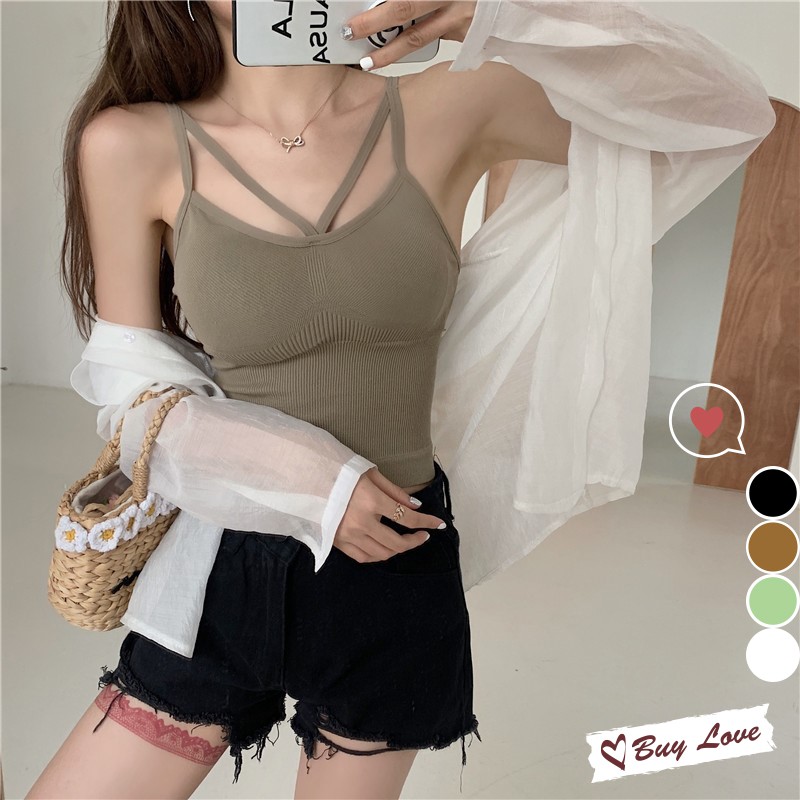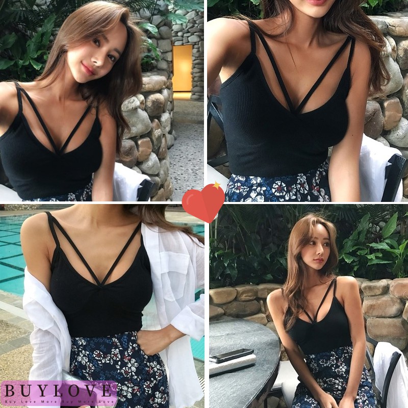 【買到戀愛】售完不補免穿內衣顯瘦收腰前交叉細肩手托杯 背心【M126】