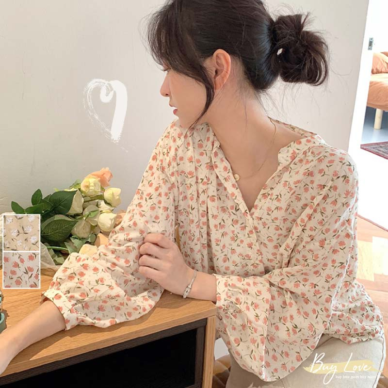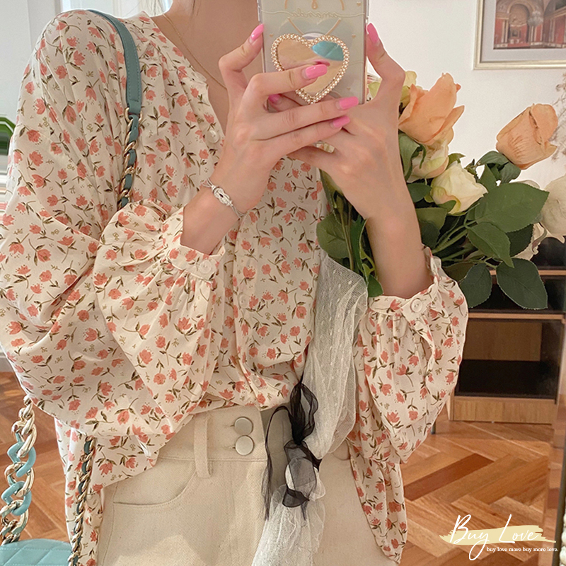 【買到戀愛】女裝 現貨 仙女款浪漫碎花雪紡上衣【FM675】