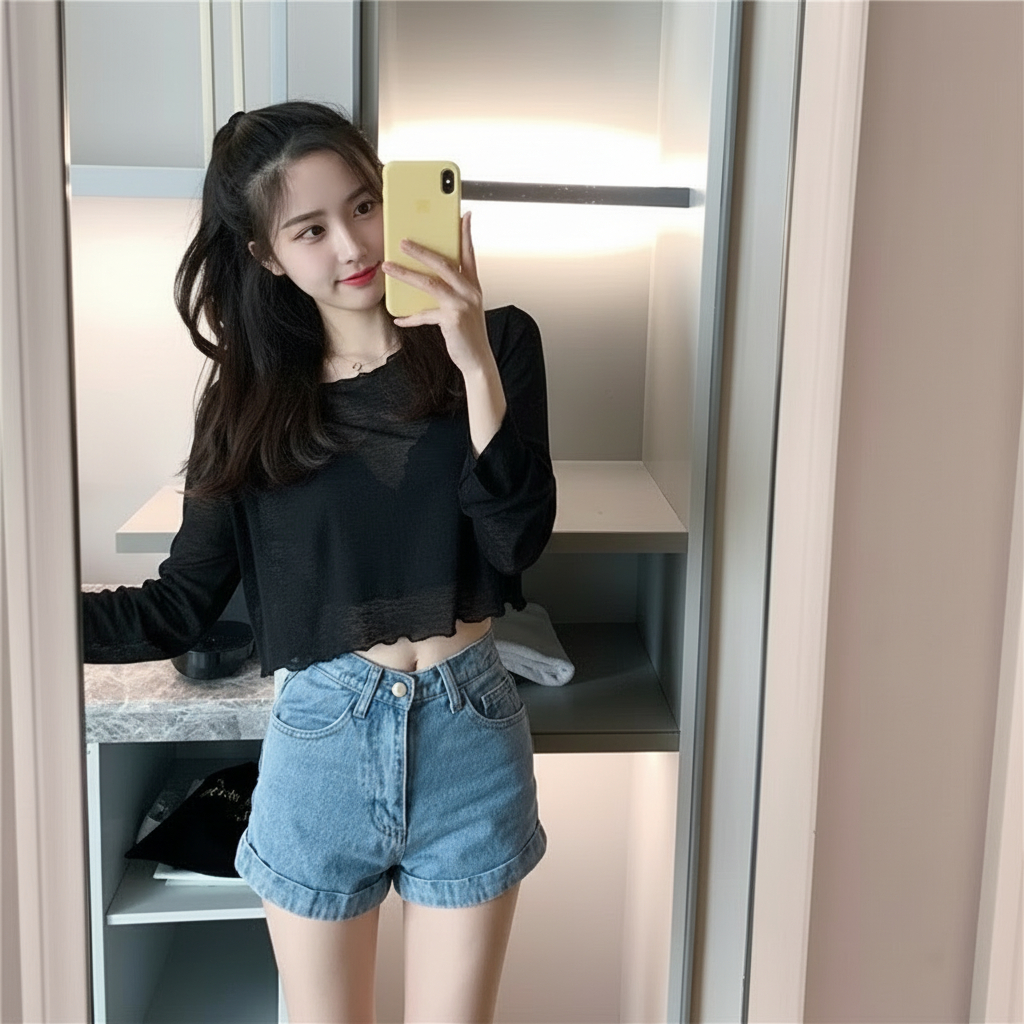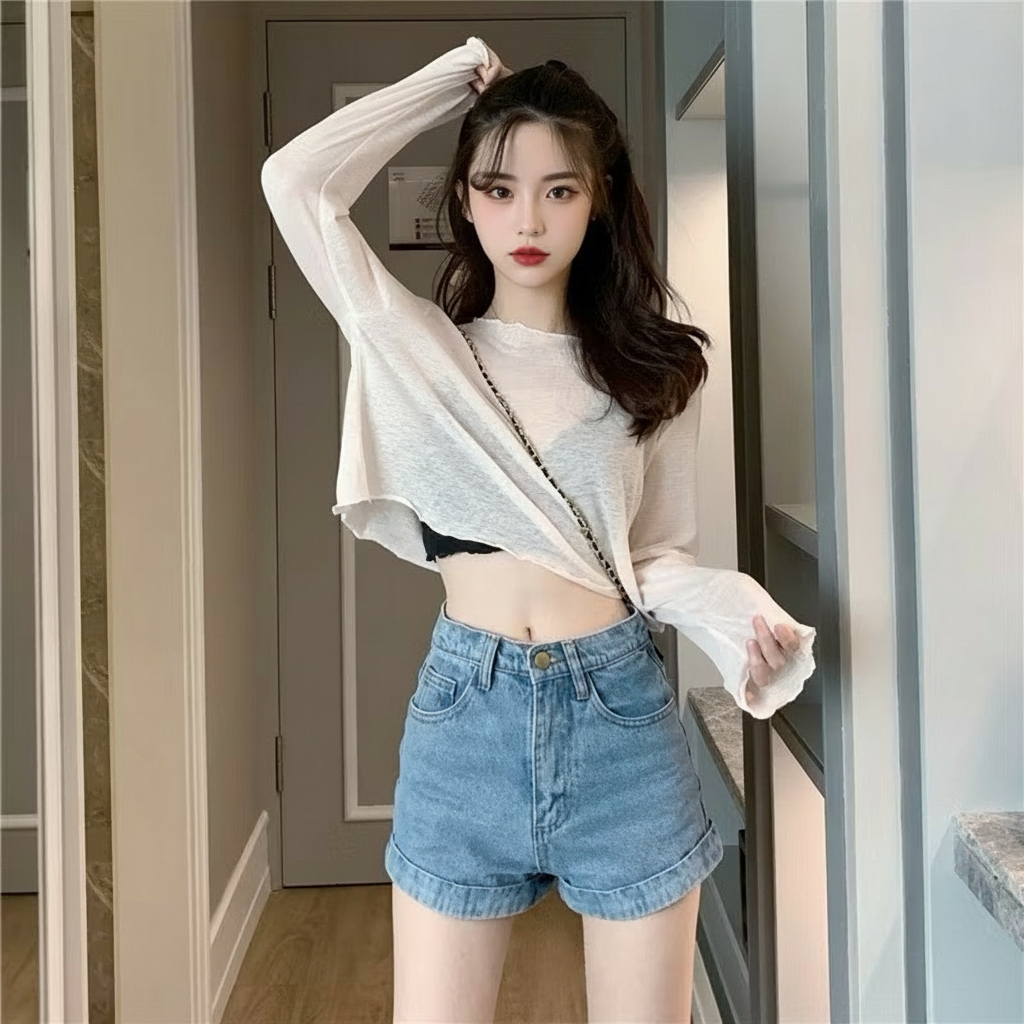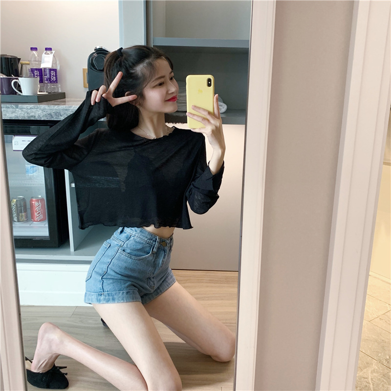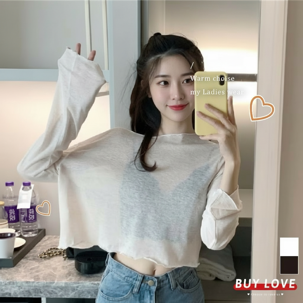 【買到戀愛】透視款木耳邊防曬罩衫 設計款 夏季短版 長袖上衣【FT3006】