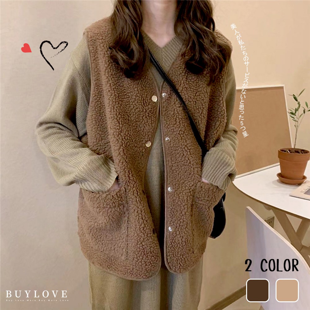 【買到戀愛】加厚毛毛背心 Chic羊羔毛雙口袋絨毛背心 馬甲 外套 羊羔毛背心 女裝【Y7812】