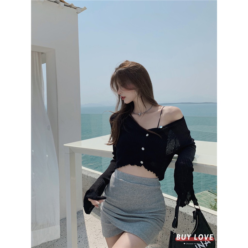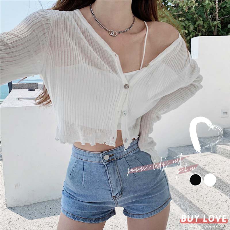 【買到戀愛】隔日到貨 女裝 性感 透膚V領木耳邊短版小外套 薄長袖 罩衫 防曬 涼感 薄外套【FB0391】