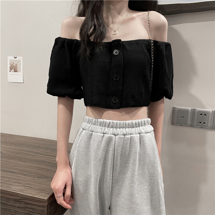 【買到戀愛】隔日到貨 女裝 美哭性感爆棚五分抛袖針織一字領上衣【FY6649】