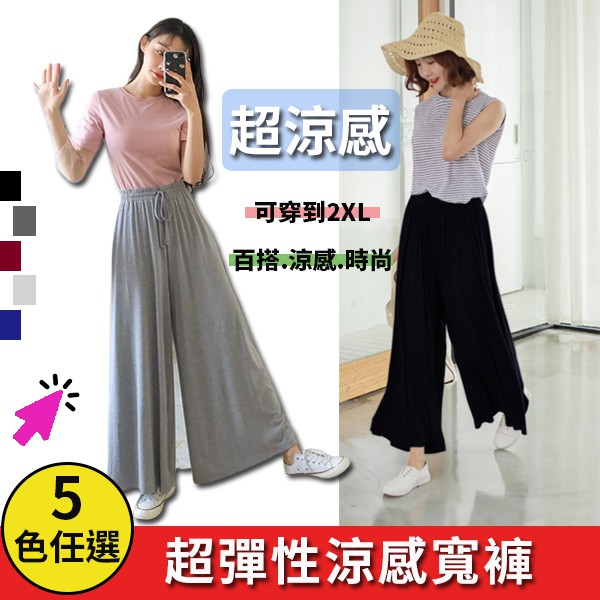 【買到戀愛】涼感 寬褲 居家褲 超舒適百搭寬褲鬆緊抽繩莫代爾材質闊腿褲 甩褲【HL407】