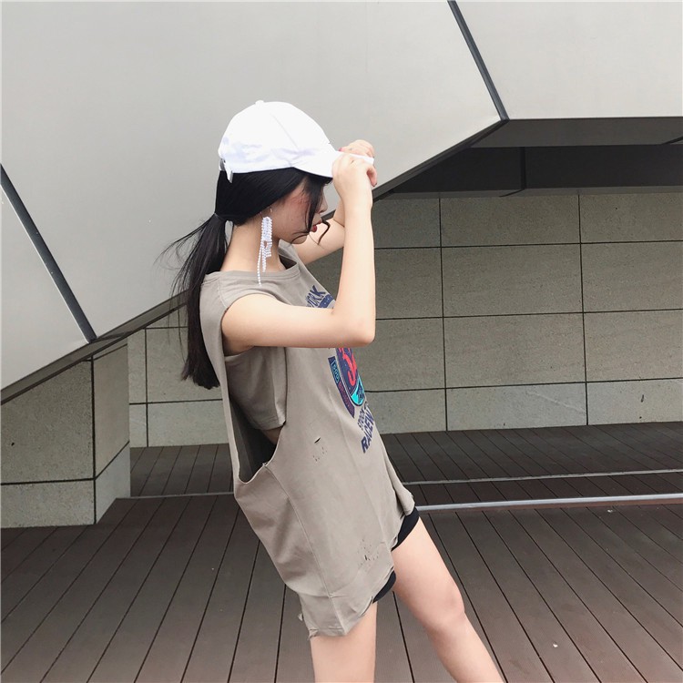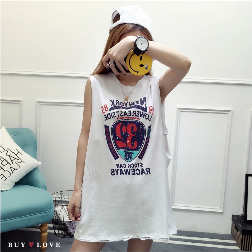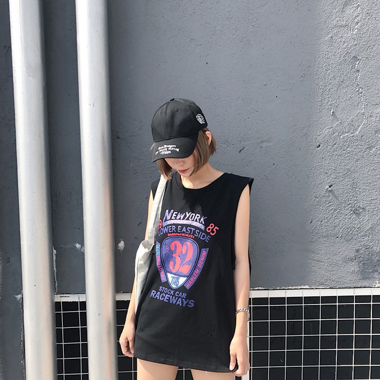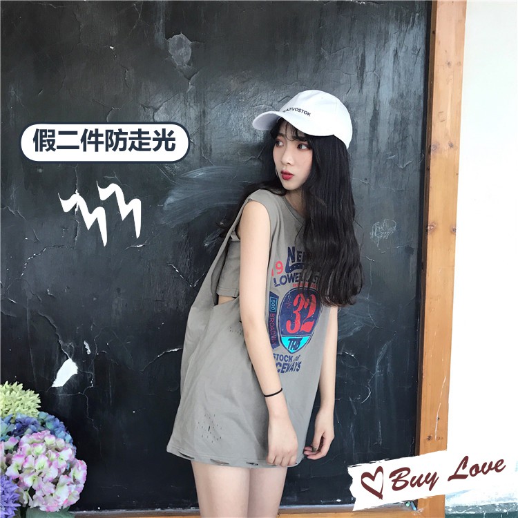 【買到戀愛】甜酷風 長背心 假二件長版字母背心 寬鬆背心 寬鬆上衣 球衣【F957】