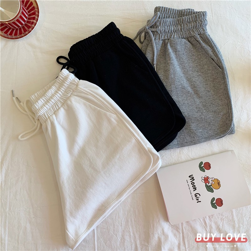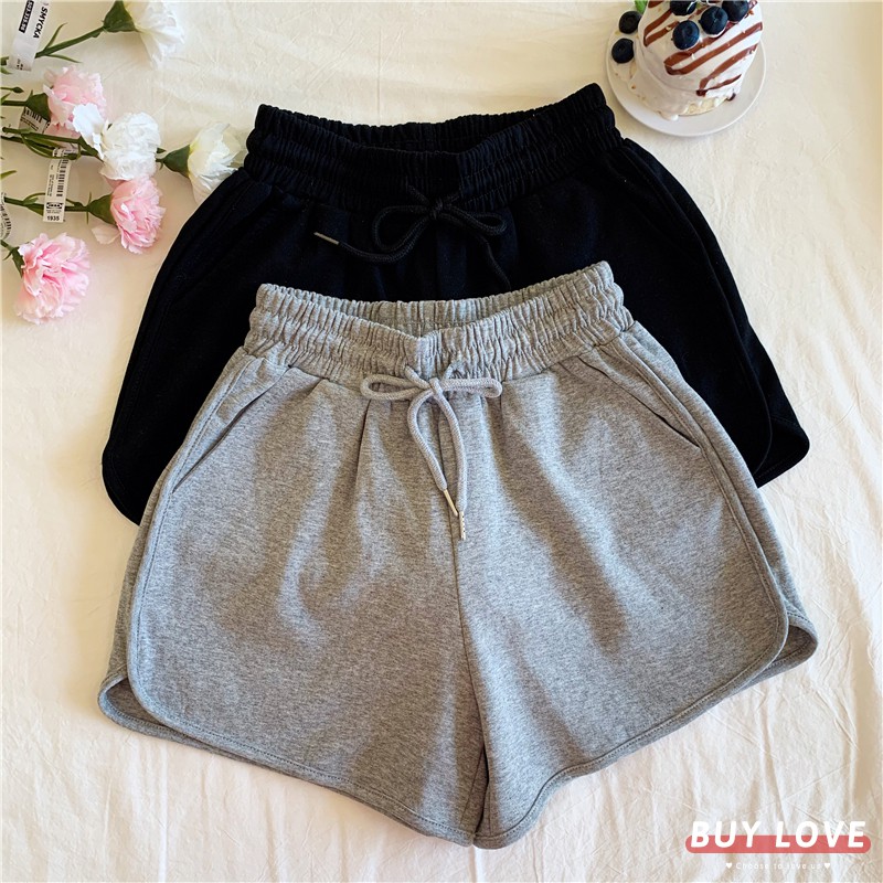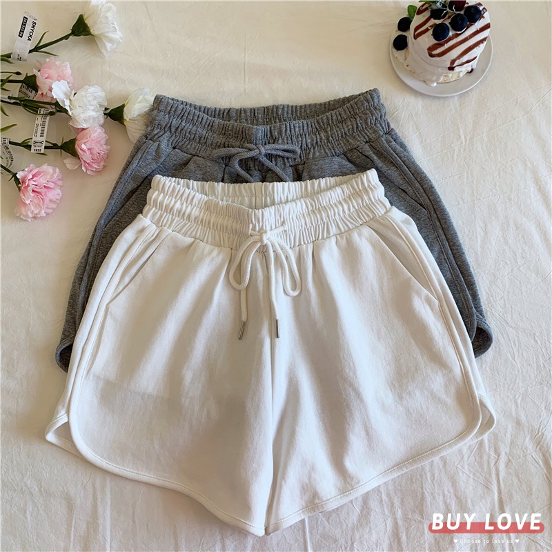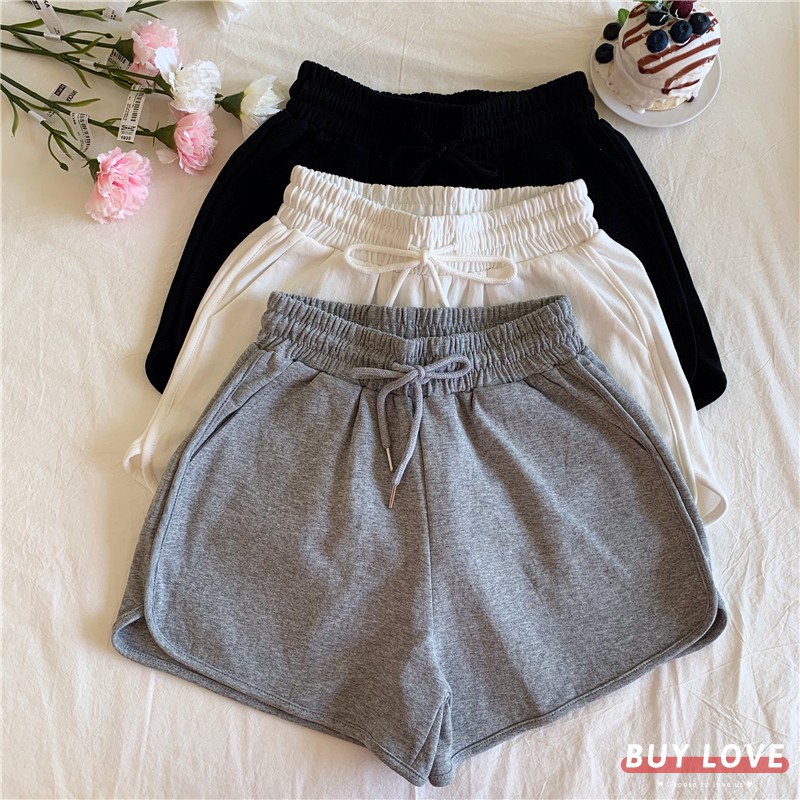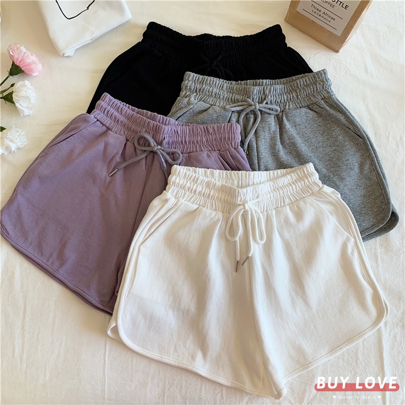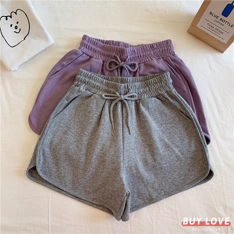【買到戀愛】韓版素面高腰顯瘦款真理褲 短褲 棉褲 休閒短褲 運動短褲 居家短褲【HS8020】