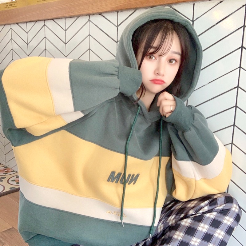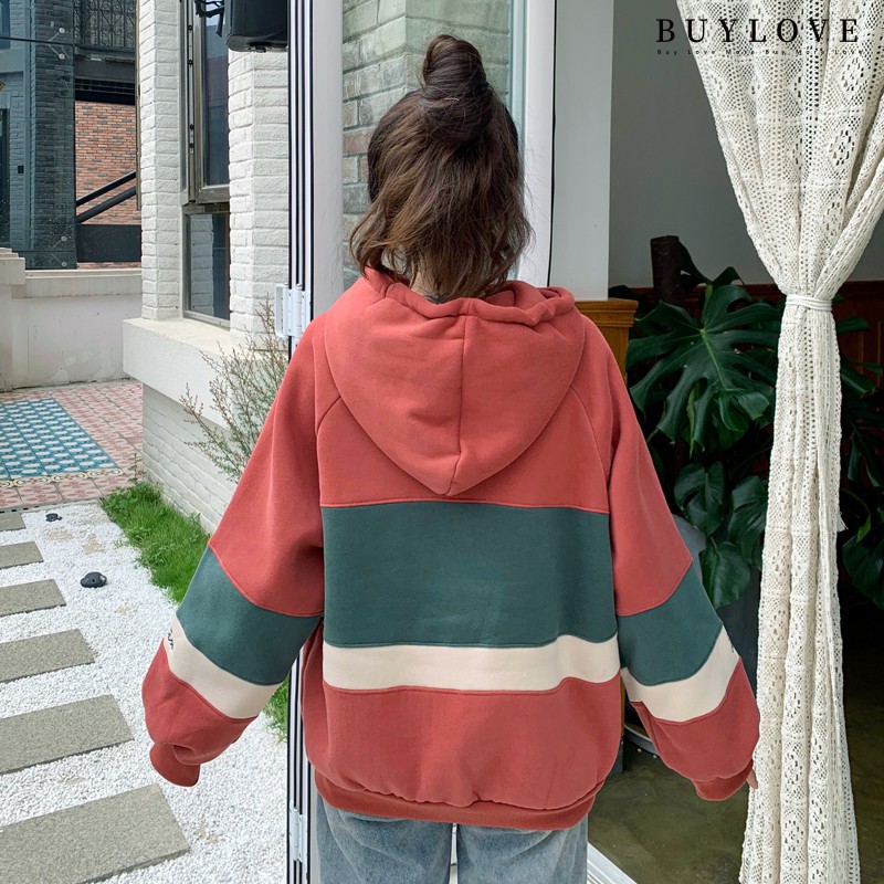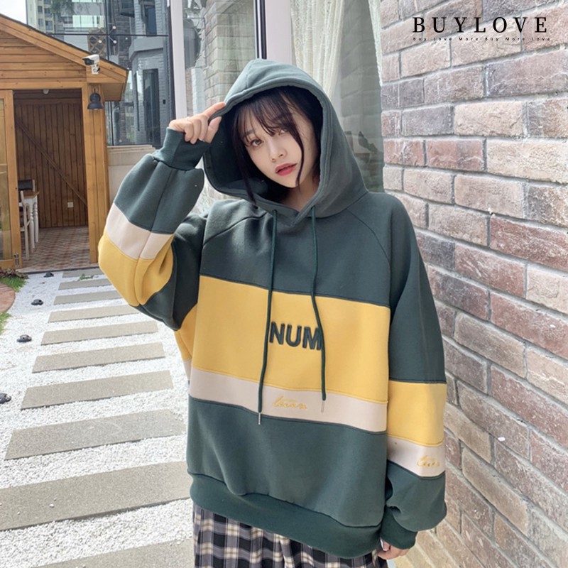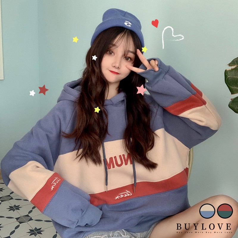 【買到戀愛】隔日到貨 女裝 加厚刷毛港味少女撞色大學帽T 衛衣 秋冬 女裝 上衣【FY626】