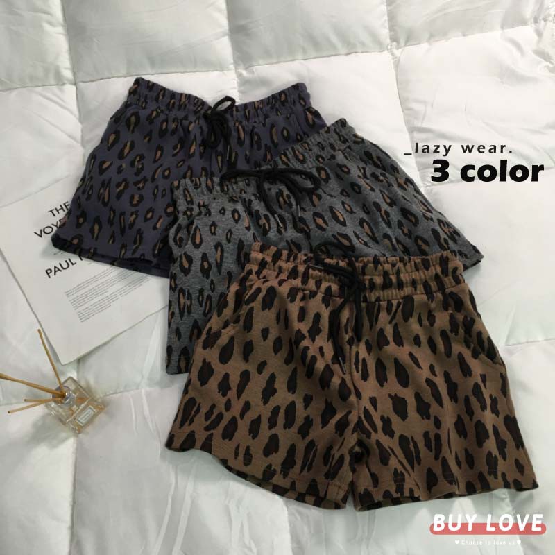 【買到戀愛】限量 高腰鬆緊居家豹紋真理褲 短褲 棉褲 【HS460】