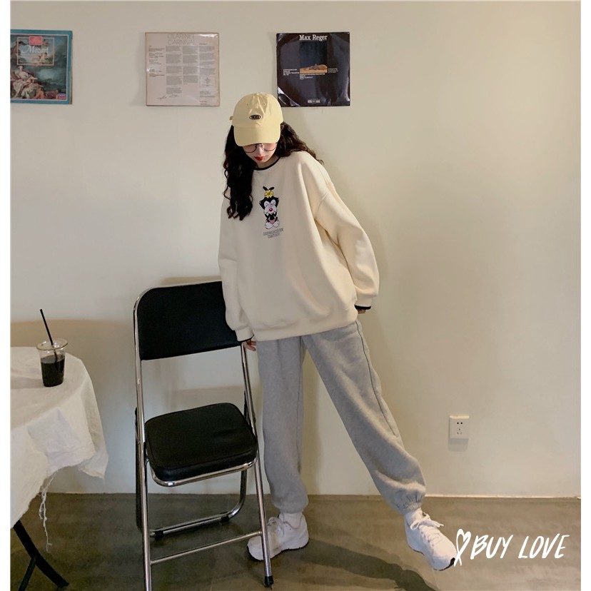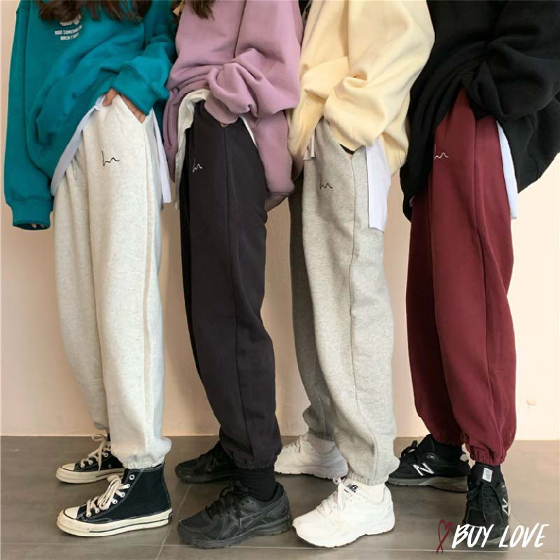 【買到戀愛】現貨出清 加厚款刷毛刺繡小標縮口褲 運動褲【HL042】