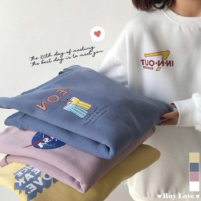 【買到戀愛】女裝 現貨 多色刷毛款字母印花大學T衛衣 刷毛 大學t 長袖 【FM9200】