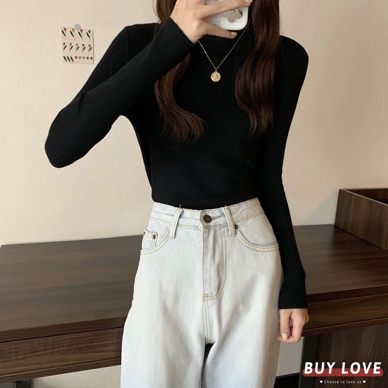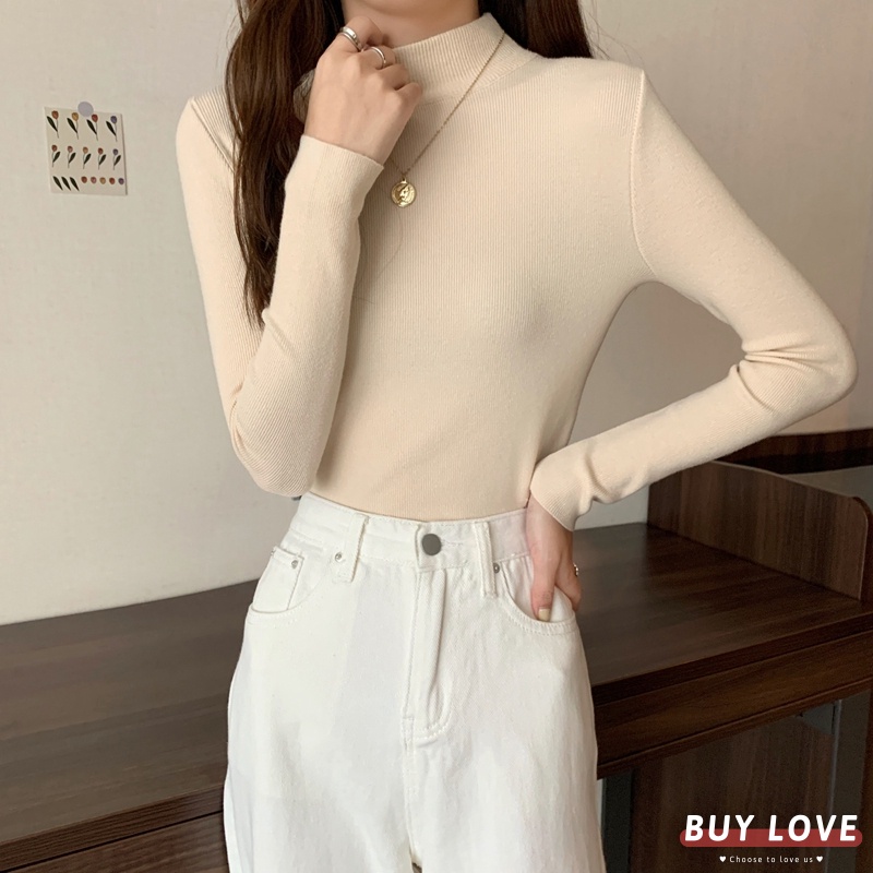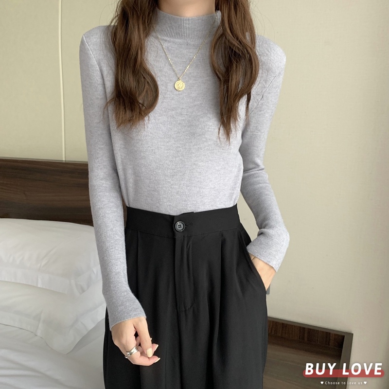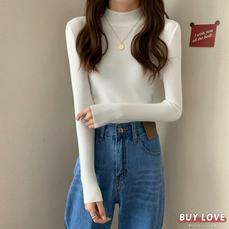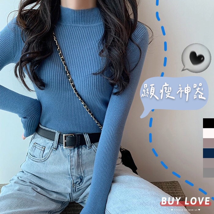 【買到戀愛】隔日到貨 微高領包芯紗長袖針織 打底衫 女裝 顯瘦 上衣 秋冬 【FZ886】
