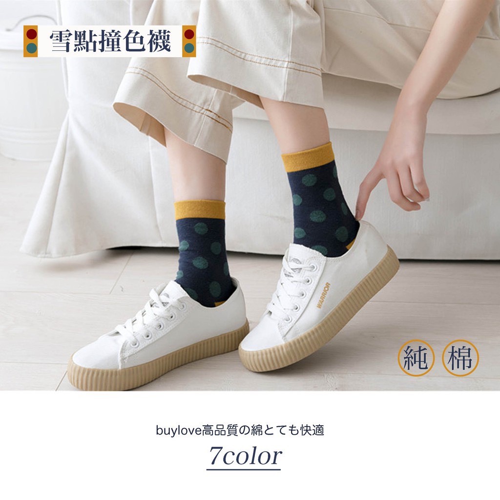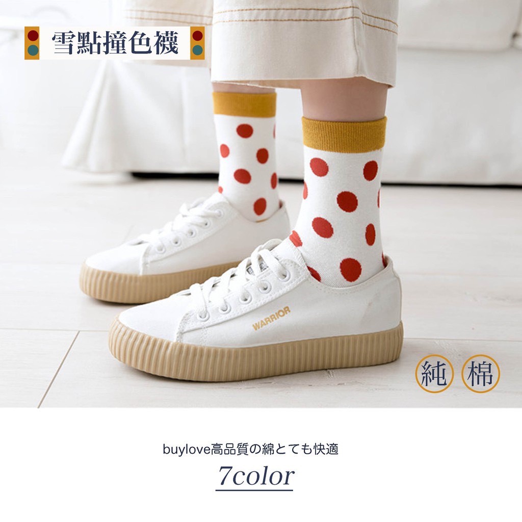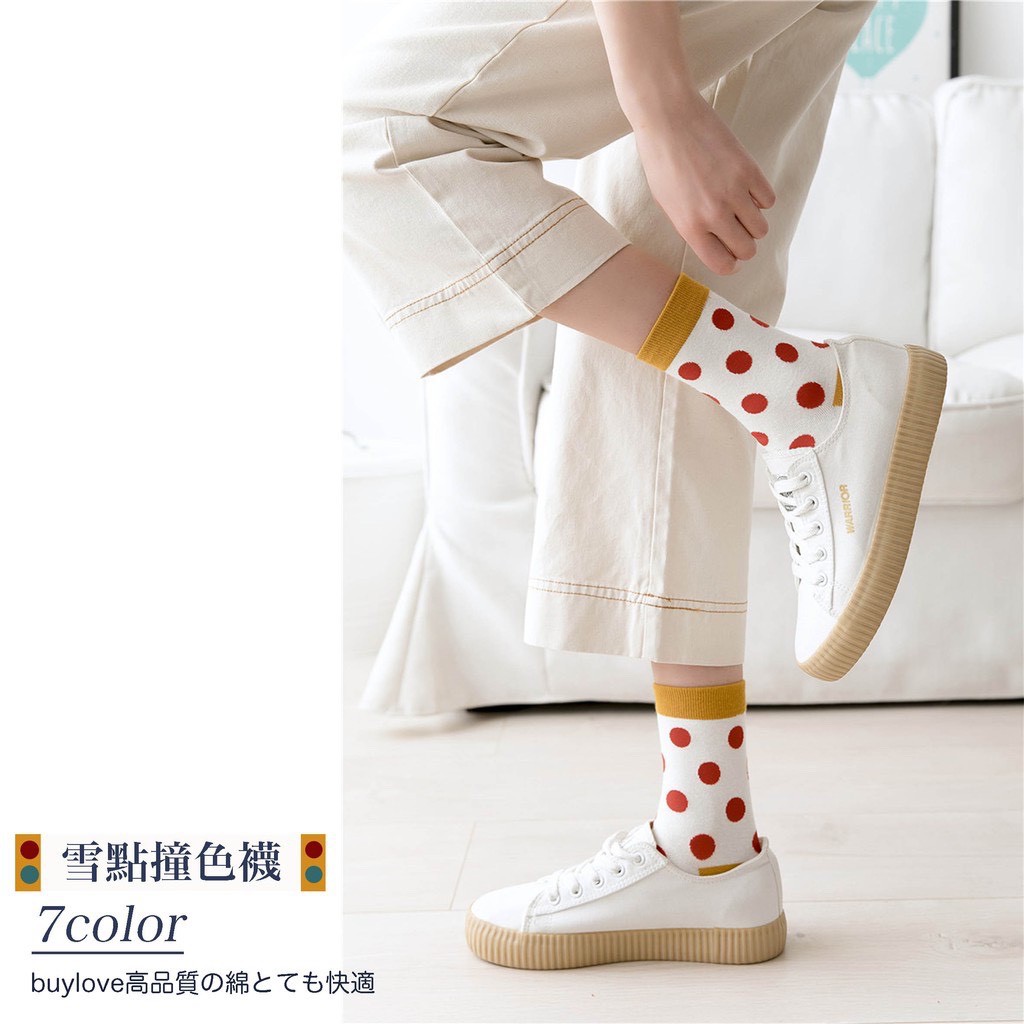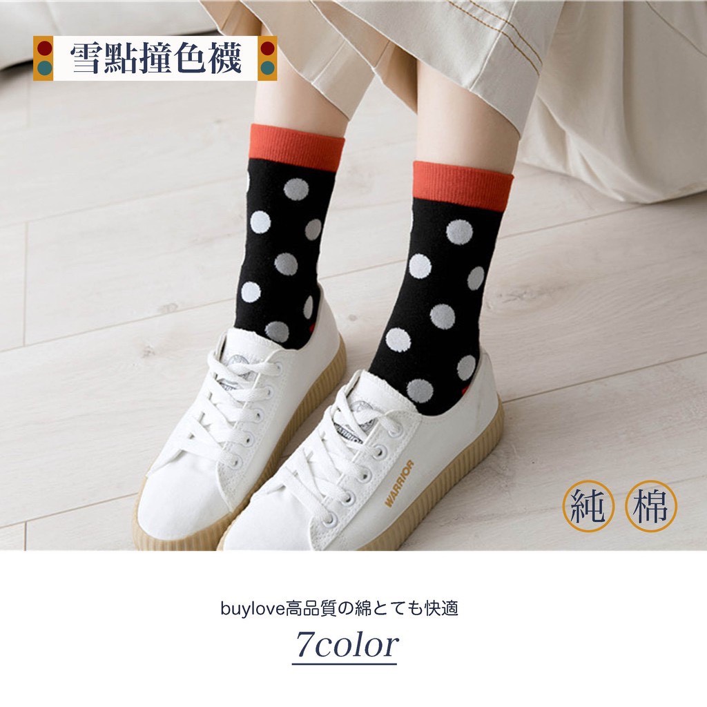 【批貨/多件組】現貨出清雪點撞色堆堆襪中筒襪【W1305】