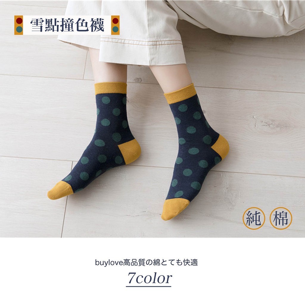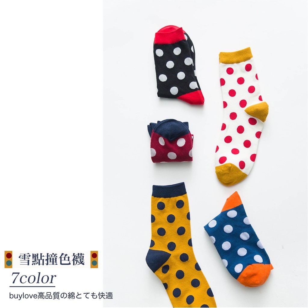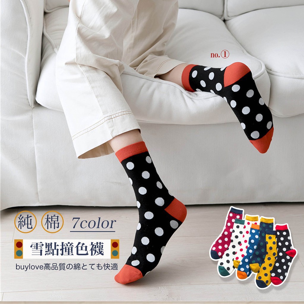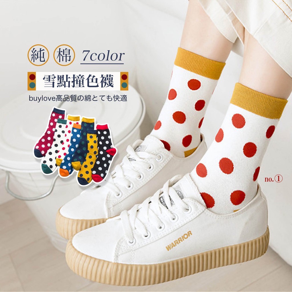 【批貨/多件組】現貨出清雪點撞色堆堆襪中筒襪【W1305】