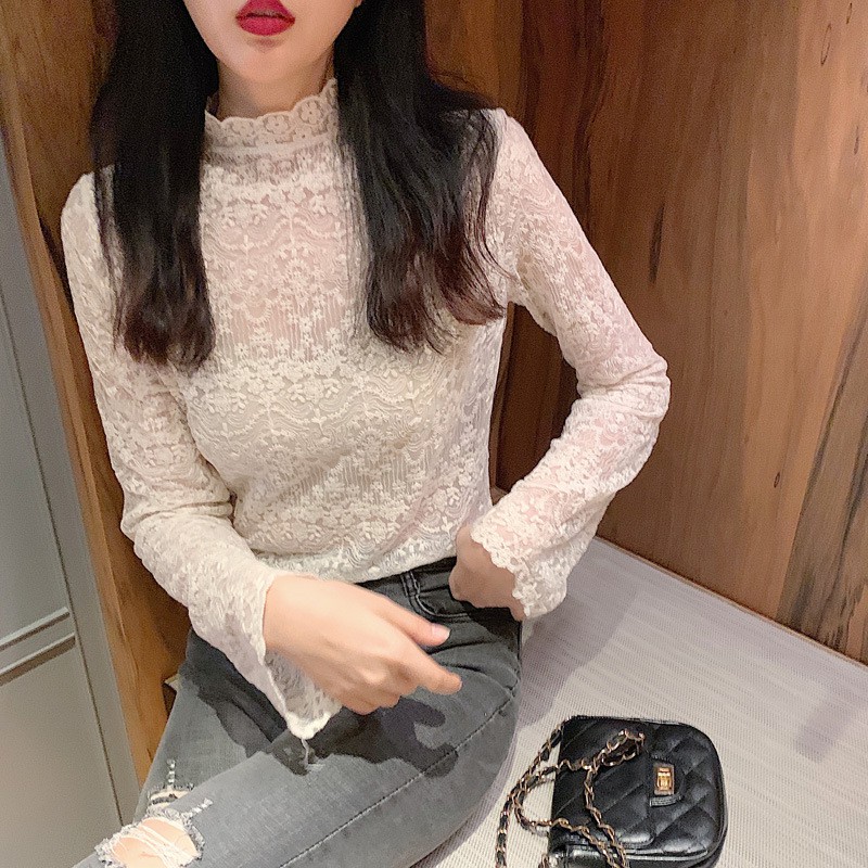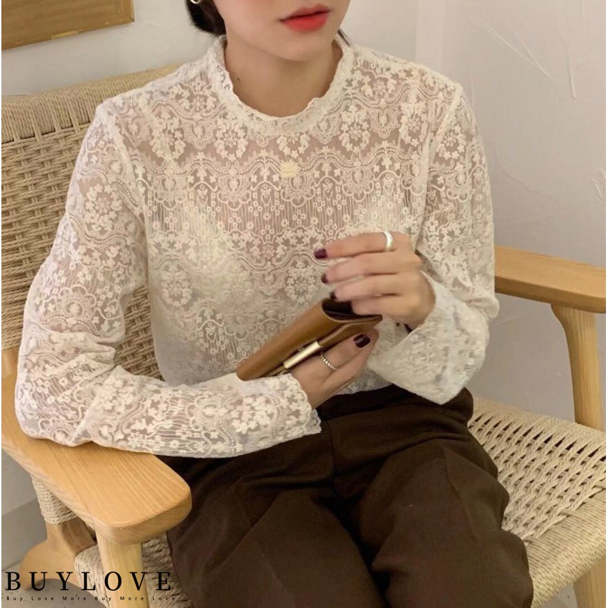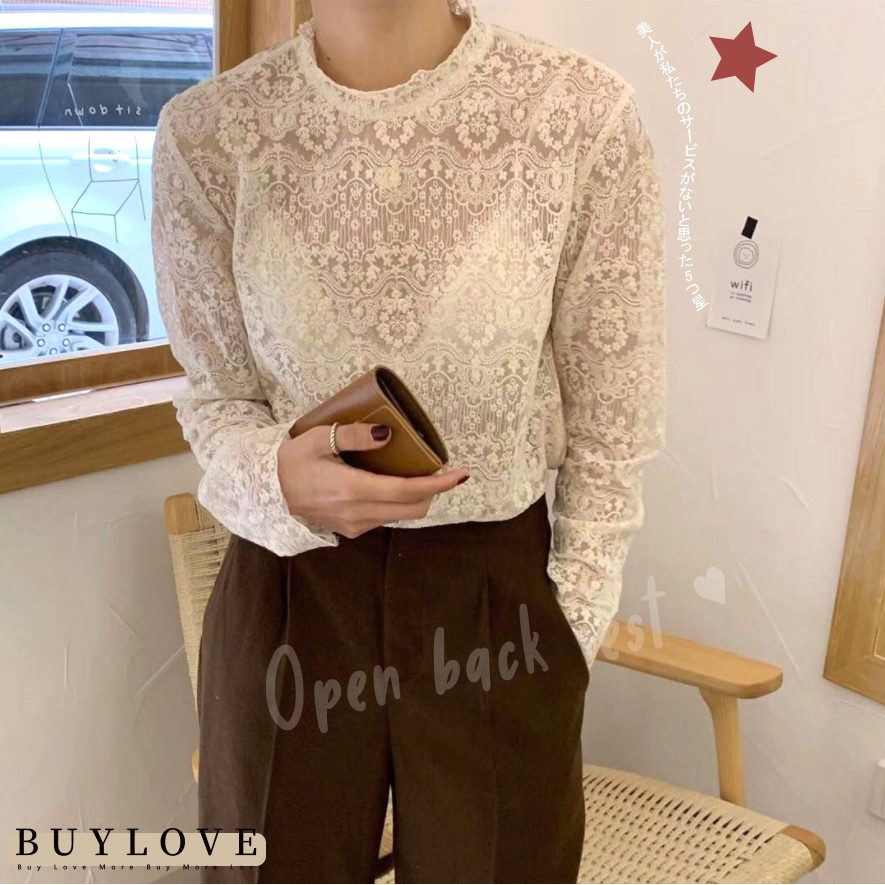 【買到戀愛】現貨出清 蕾絲超美小花線條花邊百搭蕾絲上衣【FY361】