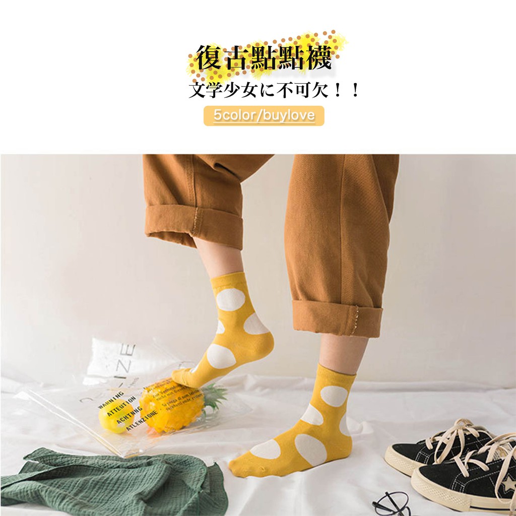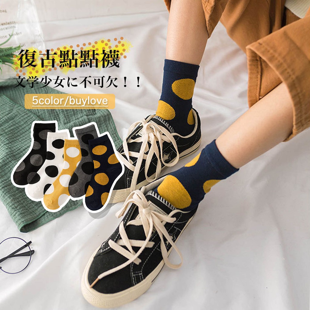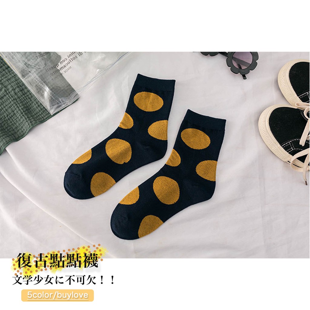 【買到戀愛】售完不補復古文藝大波點襪堆堆襪中筒襪【W6411】