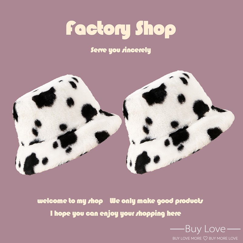 【買到戀愛】現貨出清 復古乳牛紋毛絨漁夫帽 盆帽 【J3010】