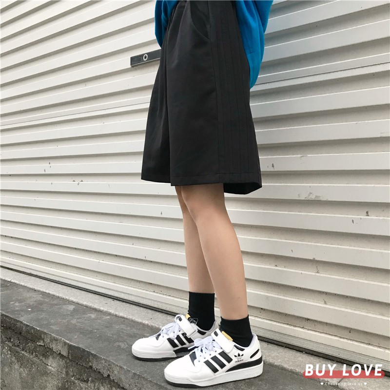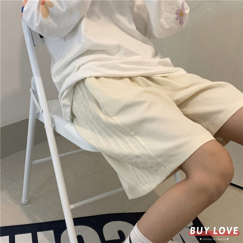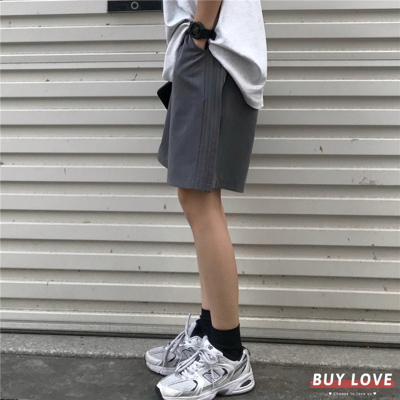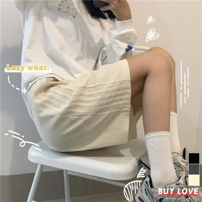 【買到戀愛】女裝 側邊條文運動風高腰五分闊腿短褲 休閒短褲 【HS463】