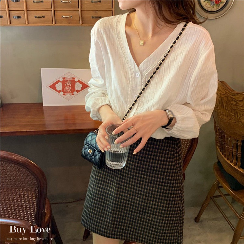 【買到戀愛】甜美款 V領蕾絲邊薄款上衣 襯衫 長袖 【FT6611】