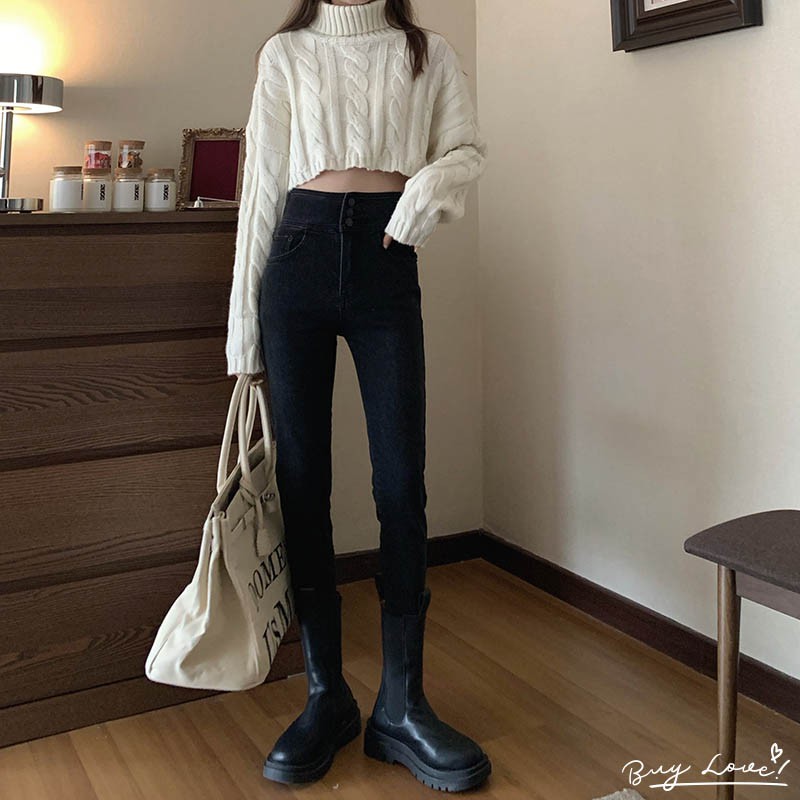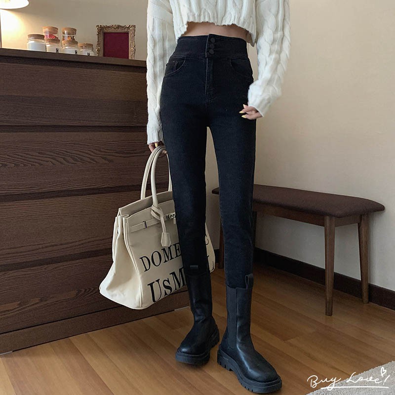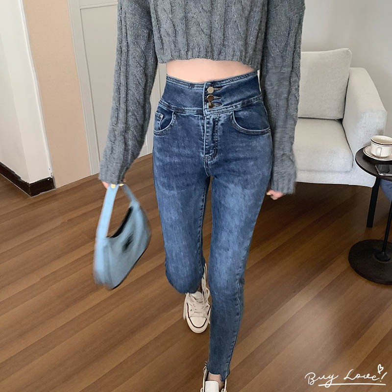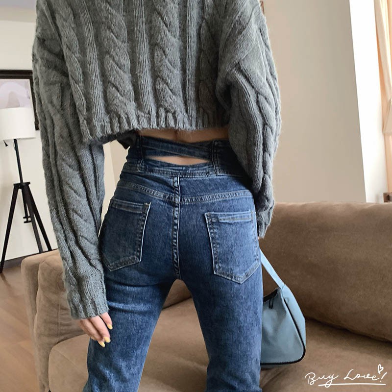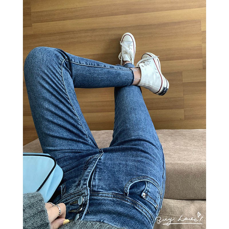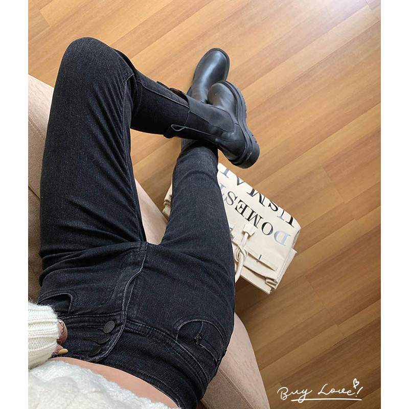 【買到戀愛】現貨出清 多碼性感排釦斜割長腿褲 牛仔褲【HL8652】