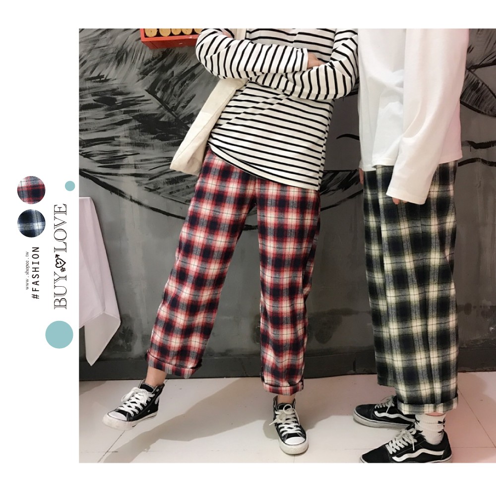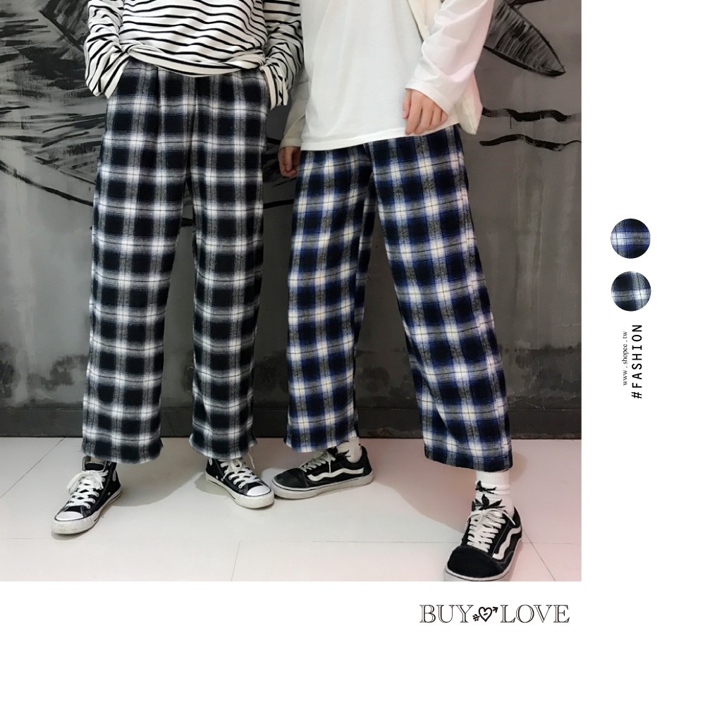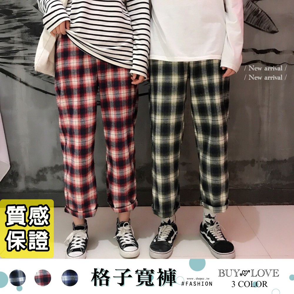 【買到戀愛】隔日到貨 質感超百搭文青復古潮韓版格紋寬褲【HL517】