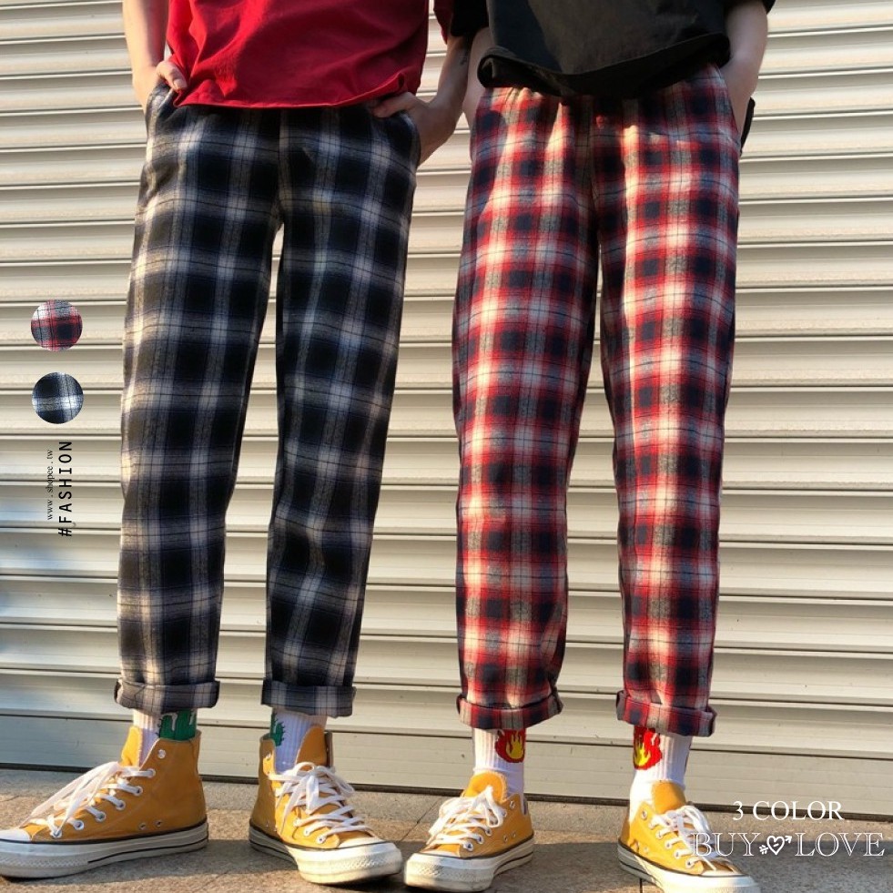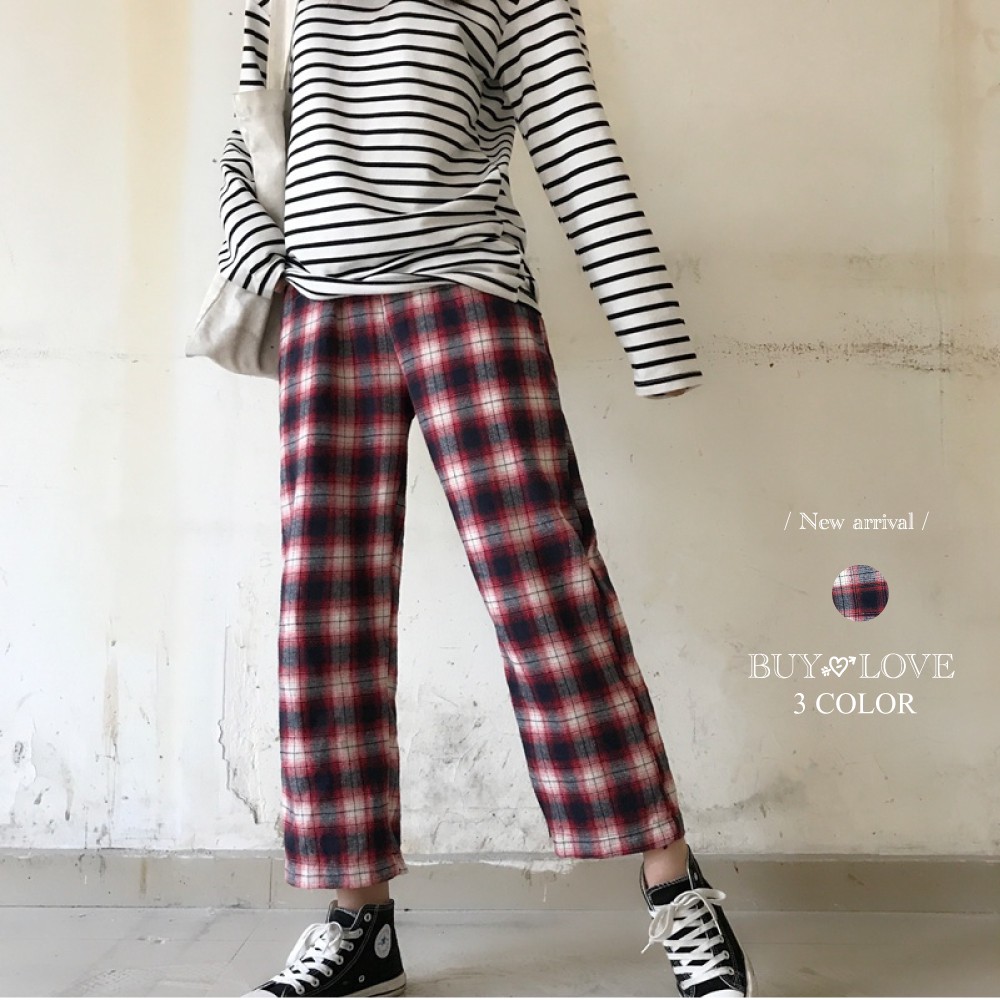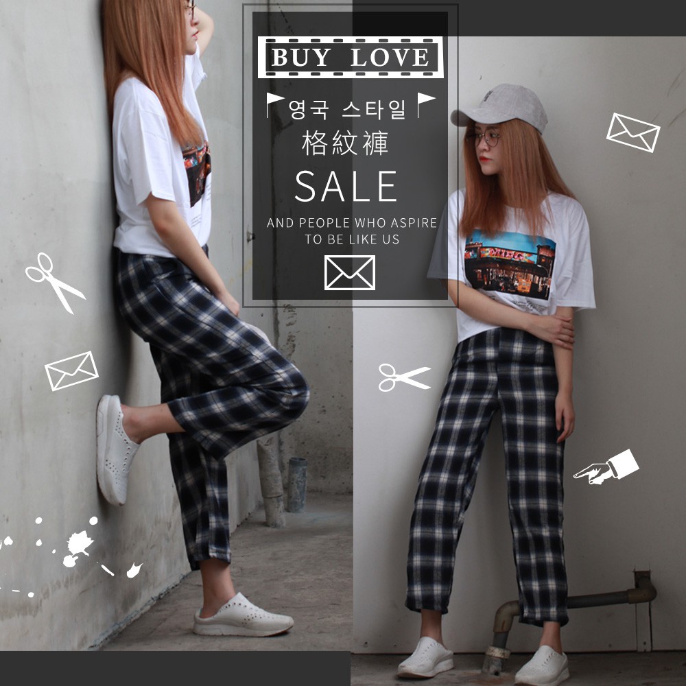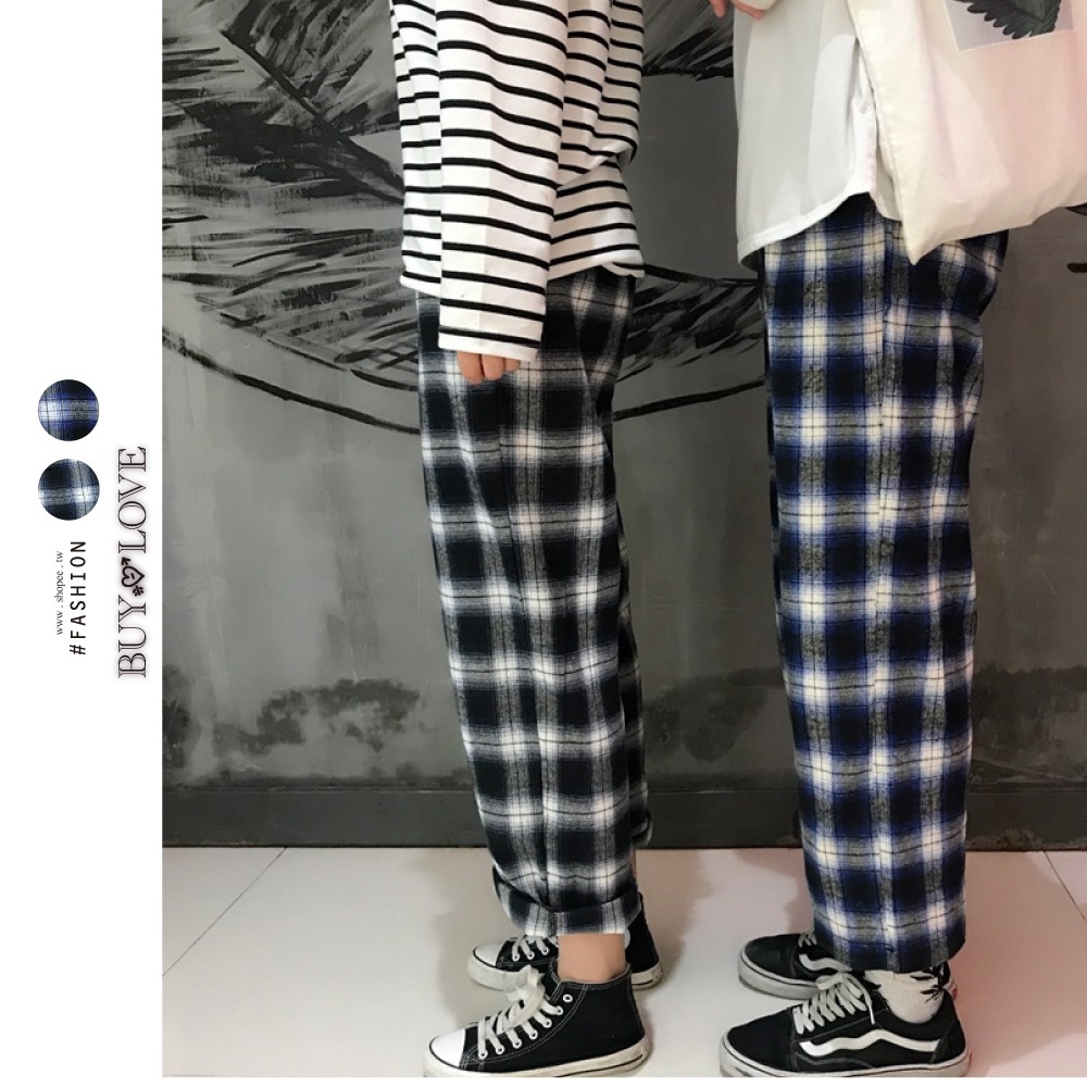【買到戀愛】隔日到貨 質感超百搭文青復古潮韓版格紋寬褲【HL517】
