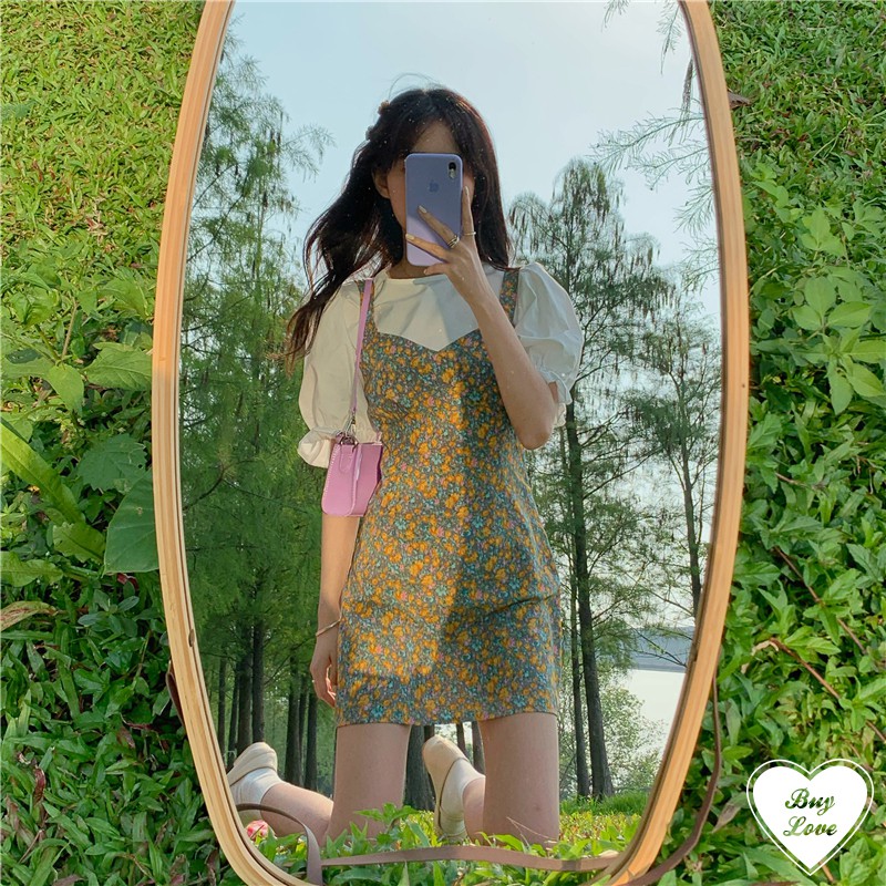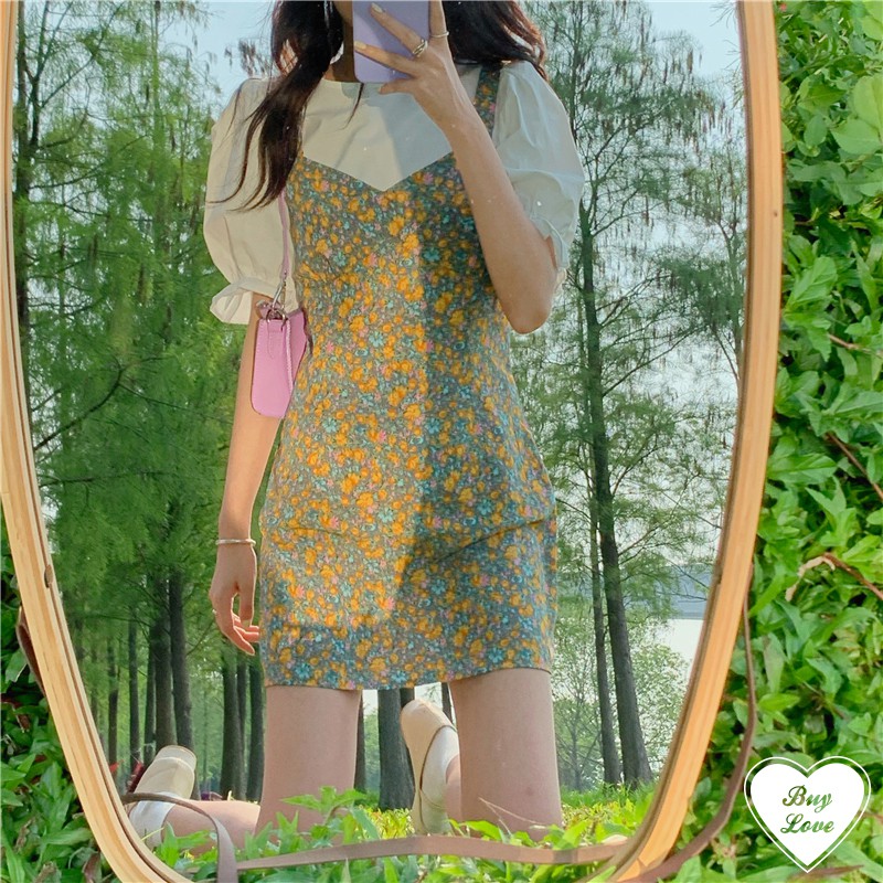 【買到戀愛】限量 歐逆碎花吊帶連身裙洋裝 澎澎公主上衣【C9045】