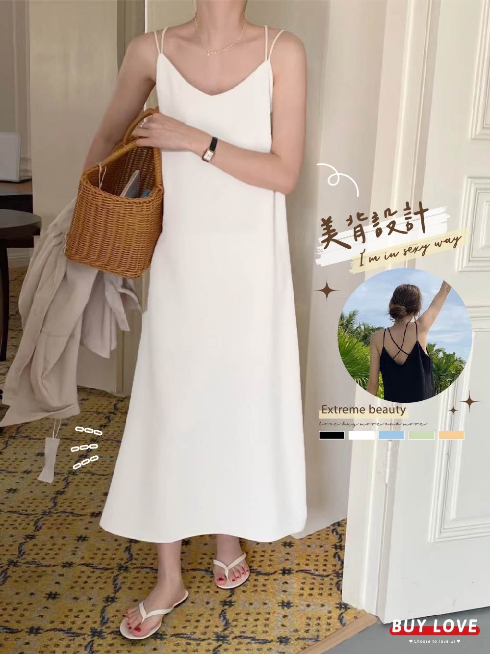 【買到戀愛】隔日到貨 細肩連衣裙 洋裝 度假風交叉美背洋裝連身裙 長裙 洋裝裙 長裙 細肩帶背心【C0842】