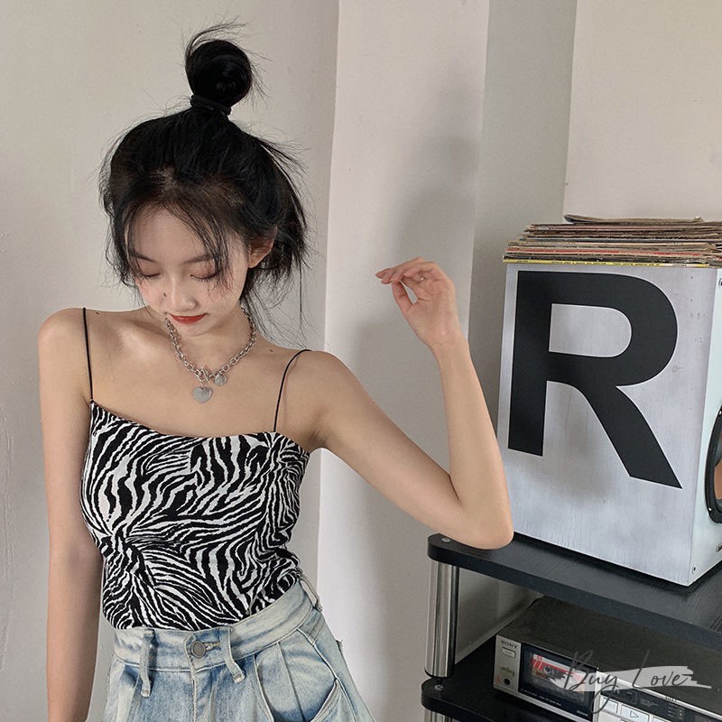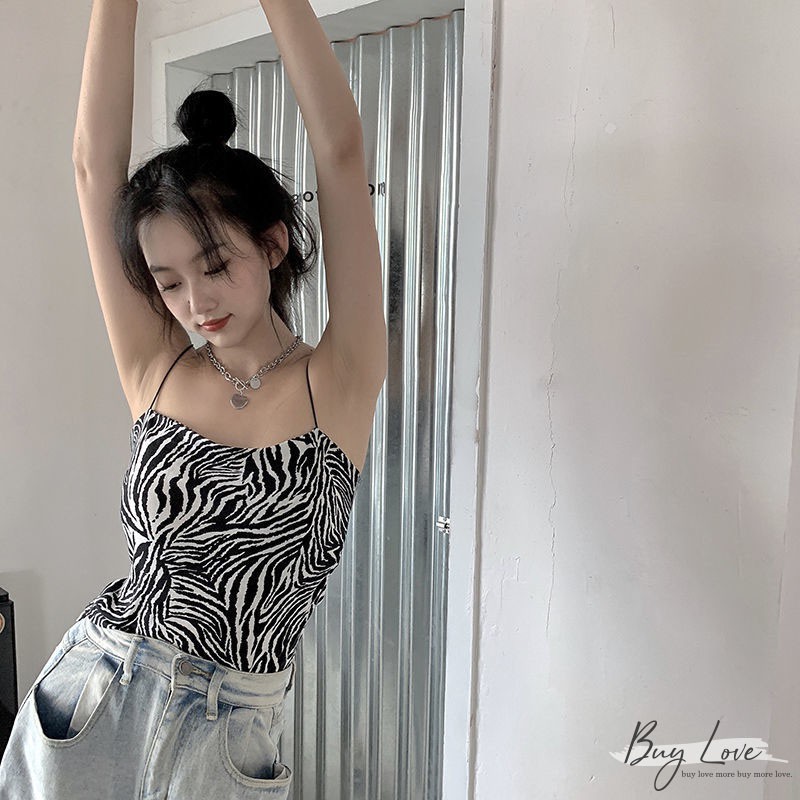 【買到戀愛】限量 隔日到貨 歐美斑馬紋平口細肩小可愛 背心 無袖上衣【M949】
