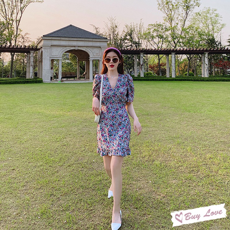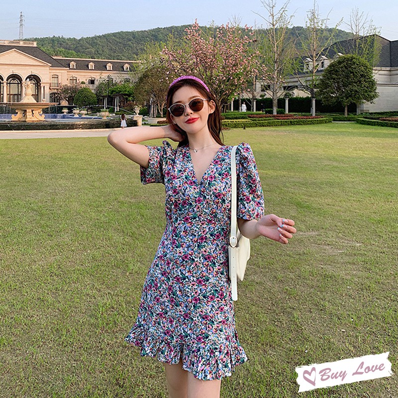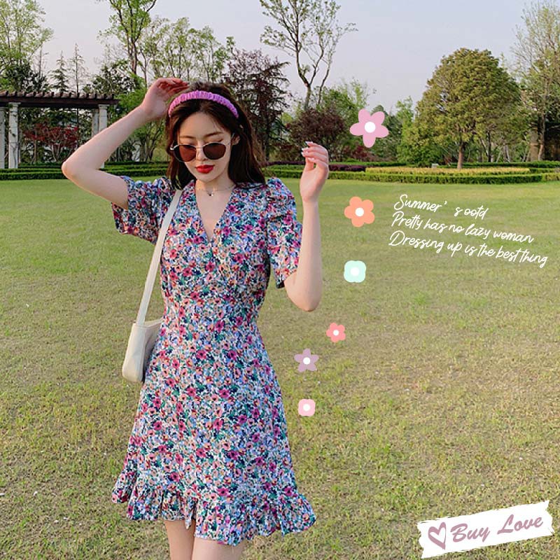 【買到戀愛】完售倒數 浪漫歐逆碎花V領連身裙【C3923】