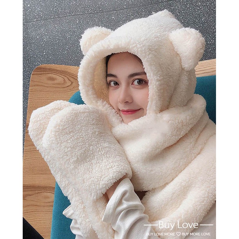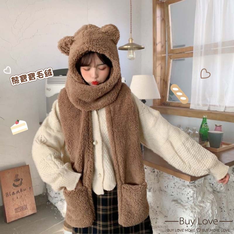 【買到戀愛】現貨限量 萌爆熊寶寶三合一圍巾 帽子 【J001】
