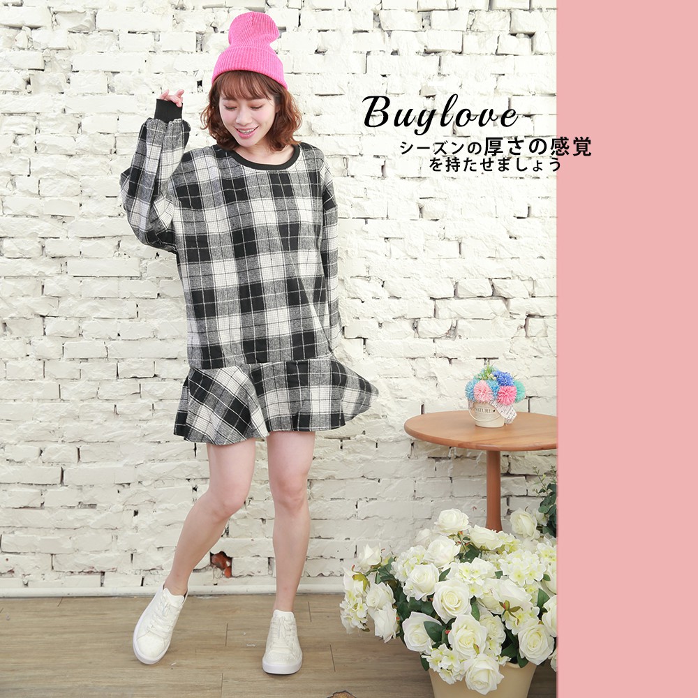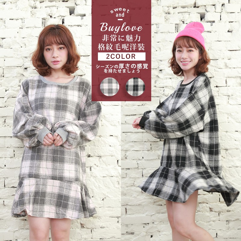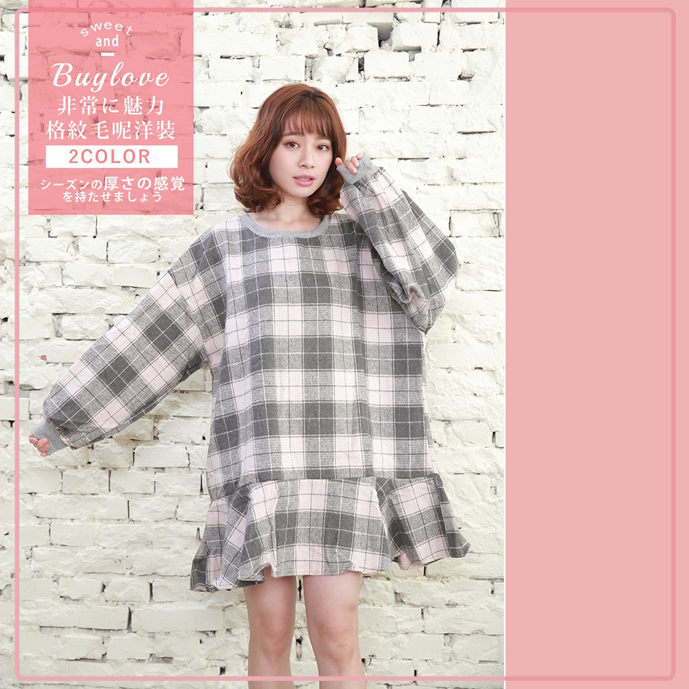 【買到戀愛】現貨出清 格紋毛呢花苞袖超甜美洋裝【C1123】