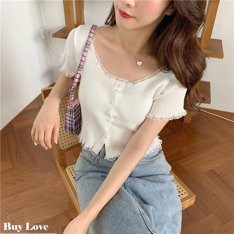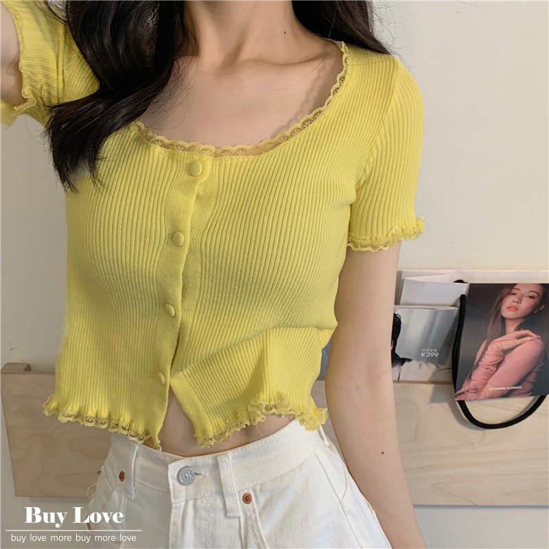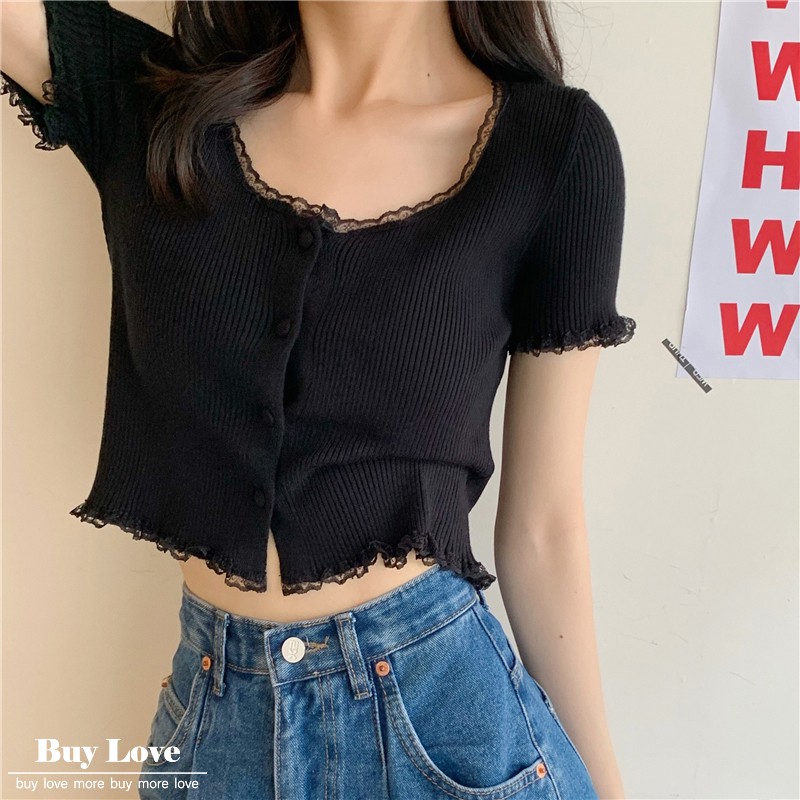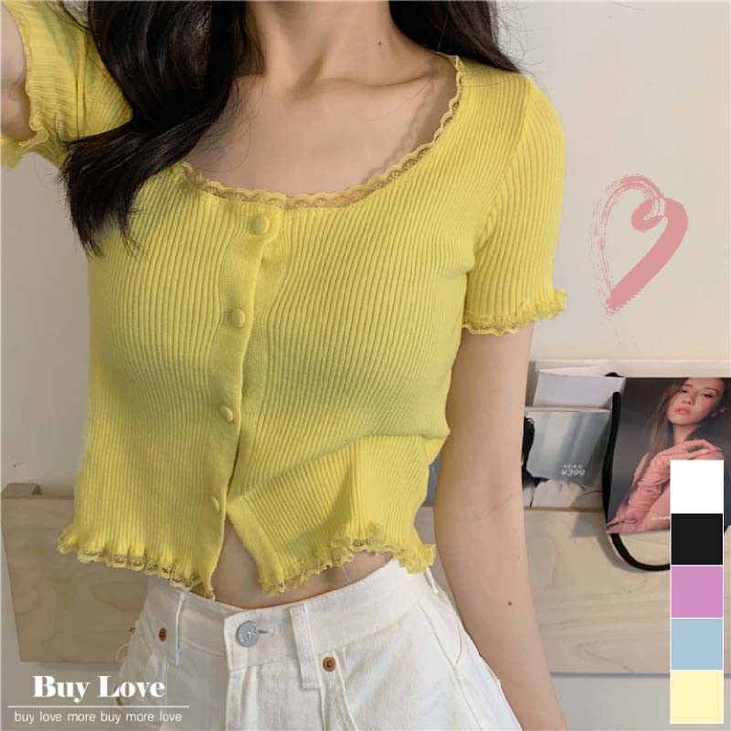 【買到戀愛】現貨出清 多色蕾絲薄針織短版上衣【FT1652】