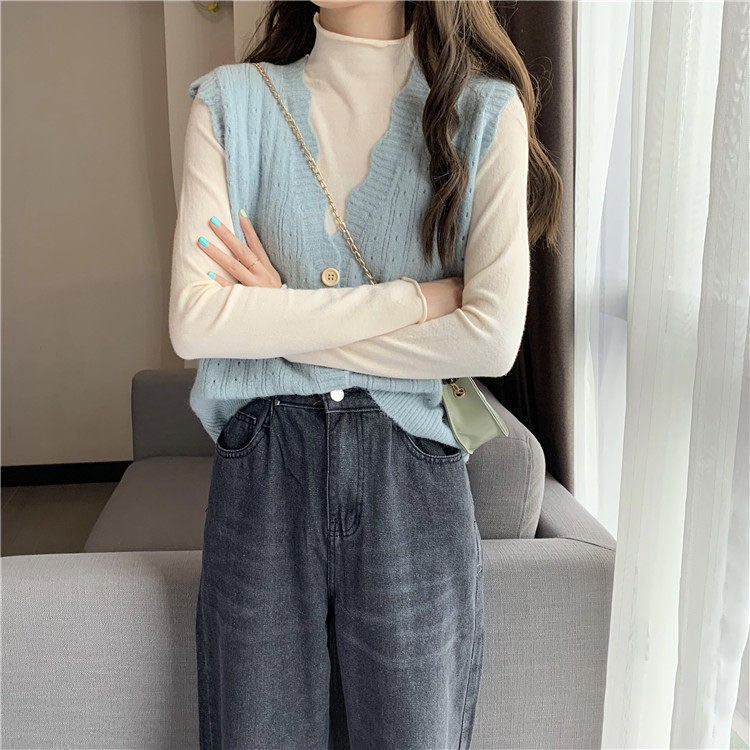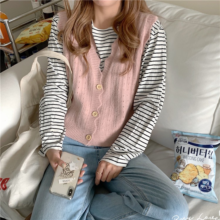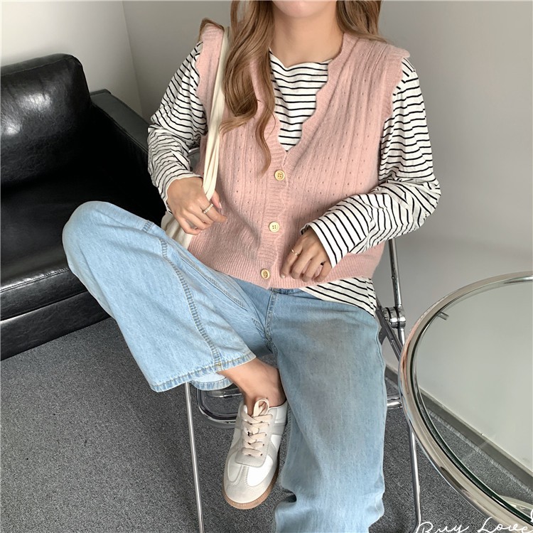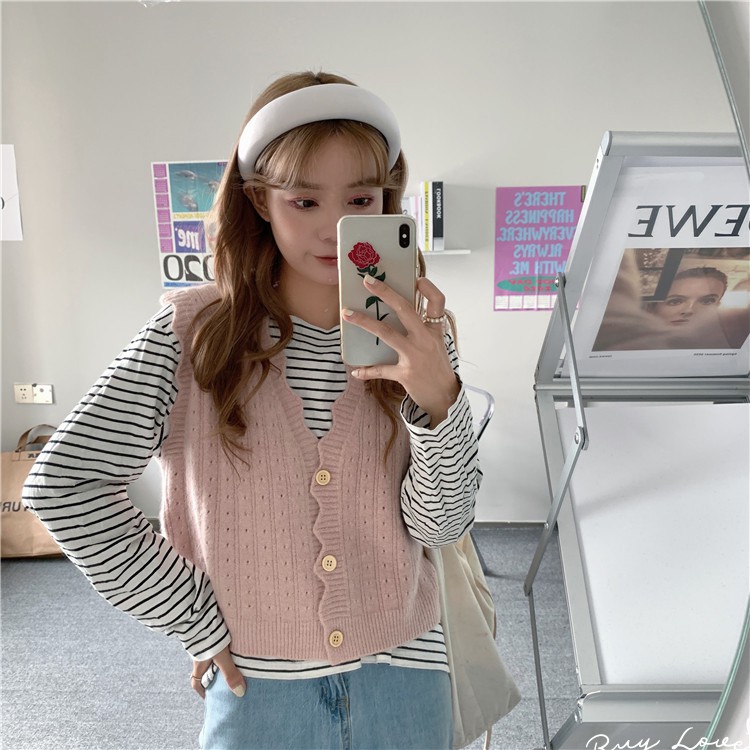 【買到戀愛】現貨出清 多色花邊洞洞外搭針織背心【M0909】